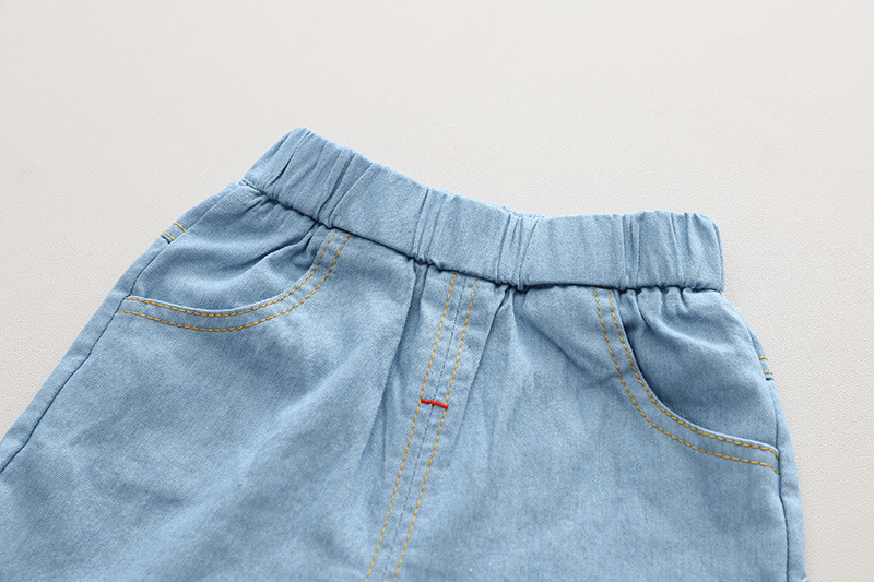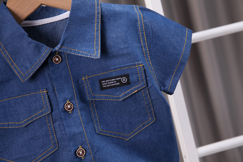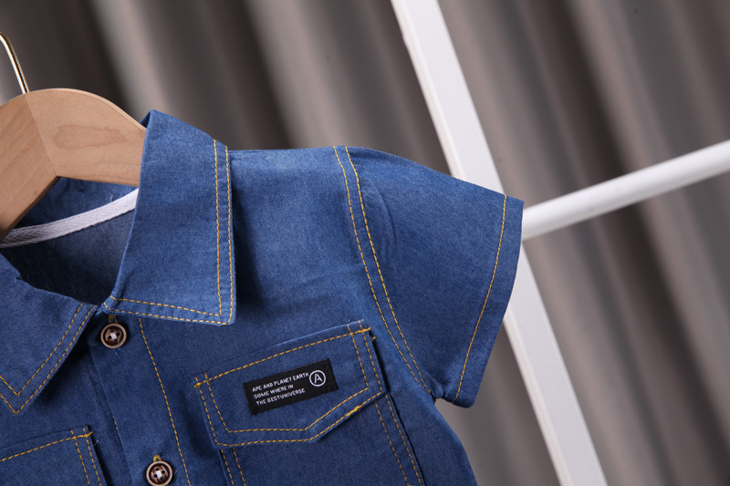 대외 무역 새로운 세트 2023 소년 단색 반팔 세트 아동 의류 아동 작업 캐주얼 바지 셔츠 투피스 세트스토어 가기