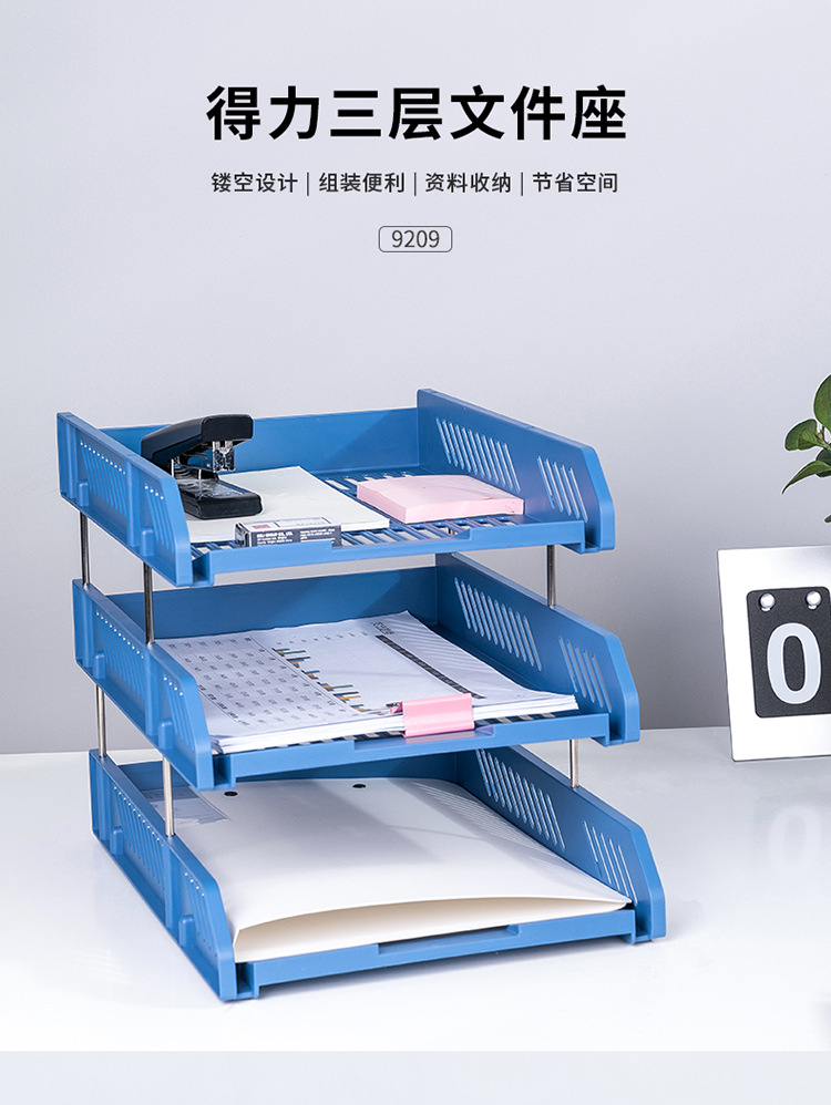 델리 9209 3 층 중공 저장 파일 홀더 무료 분해 및 조립 3 층 파일 트레이 파일 상자 도매