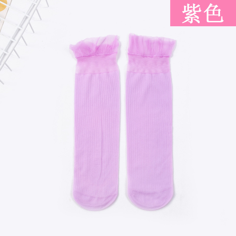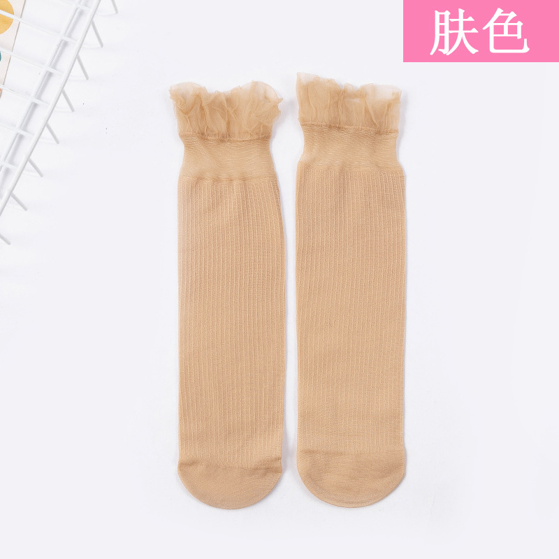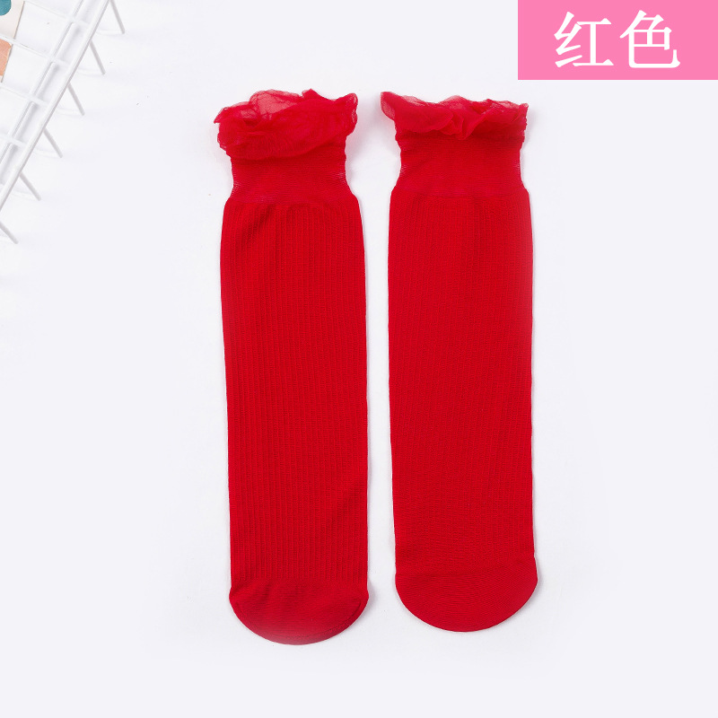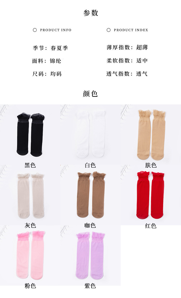 짧은 실크 스타킹 여자 레이스 여름 얇은 중간 길이 스타킹 레이스 일본 스타일 중간 길이 여성의 검은 고기 큰 빨간 유리 실크 양말