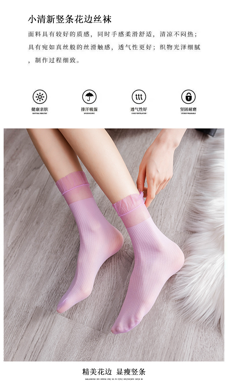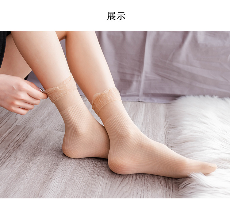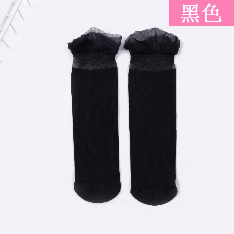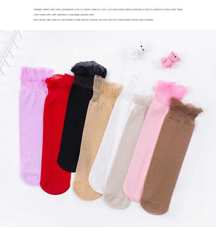 짧은 실크 스타킹 여자 레이스 여름 얇은 중간 길이 스타킹 레이스 일본 스타일 중간 길이 여성의 검은 고기 큰 빨간 유리 실크 양말스토어 가기