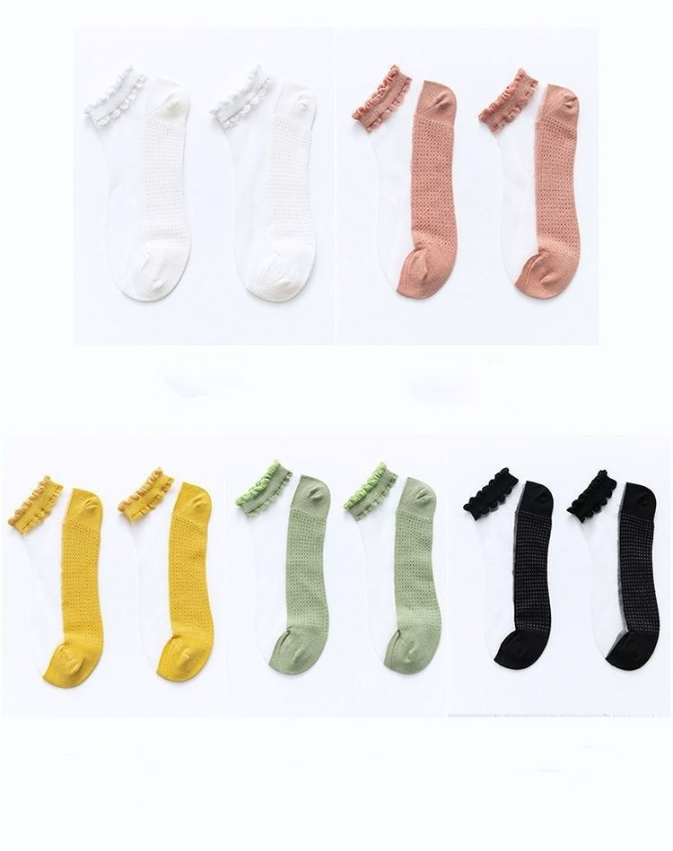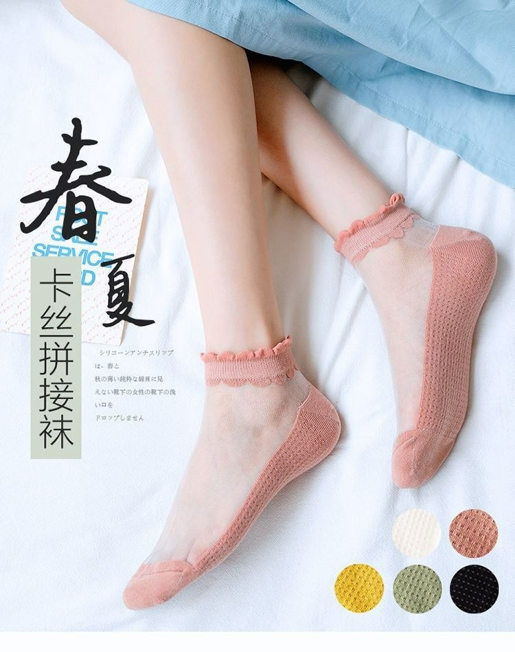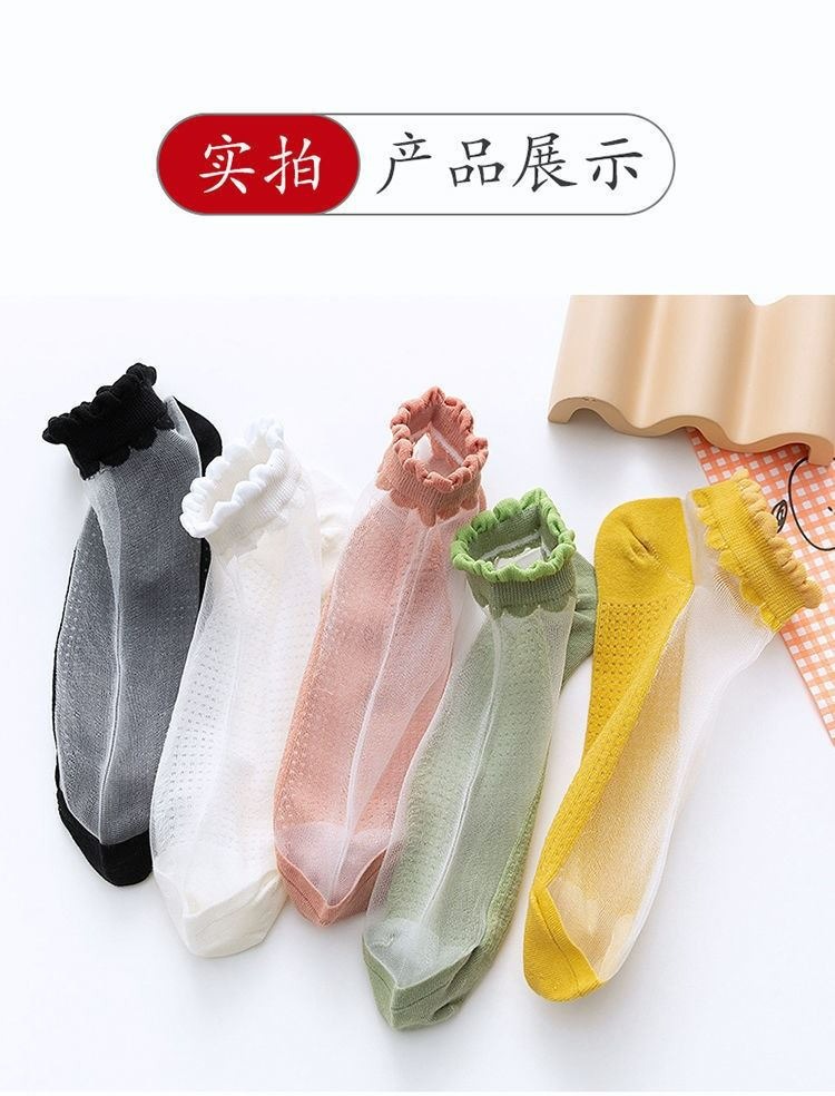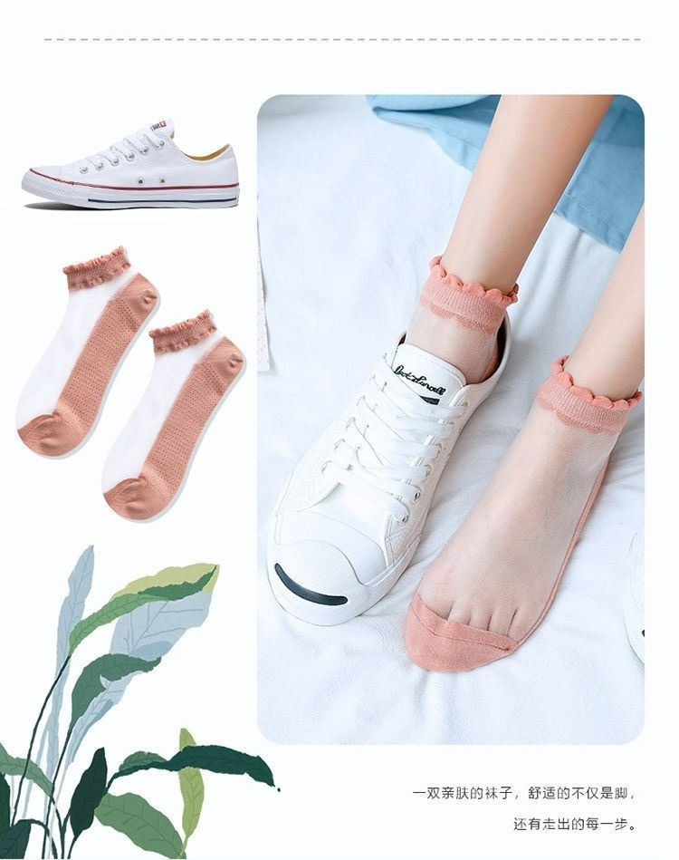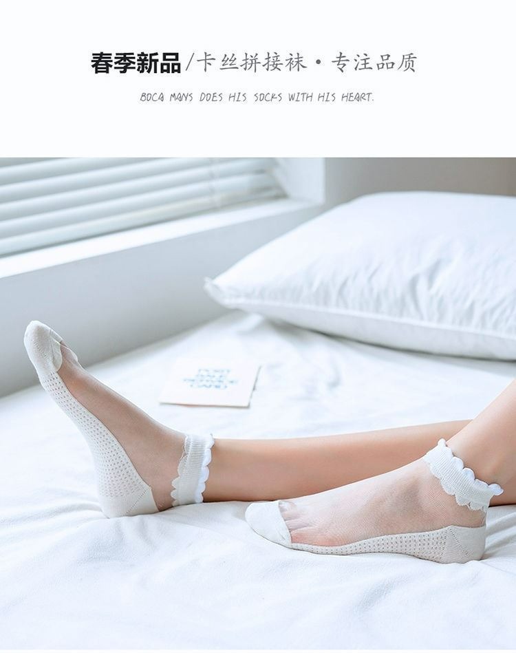 양말 여성용 유리 실크 메쉬 양말 봄과 여름 agaric 레이스 투명 초박형 바닥 크리스탈 보트 양말