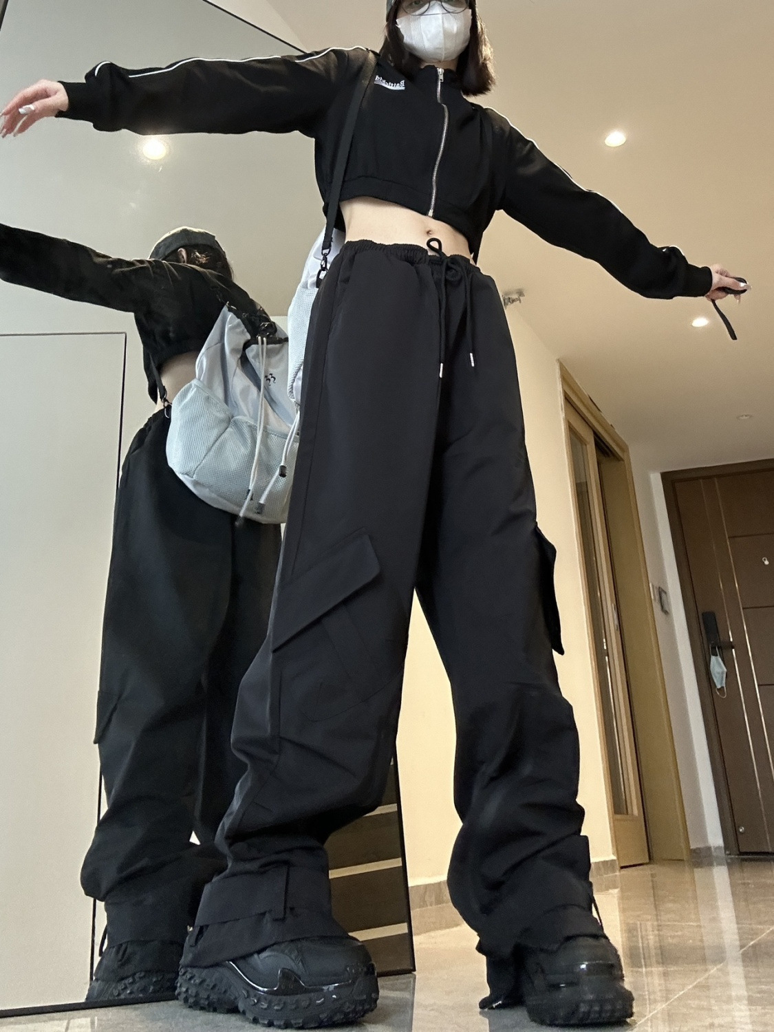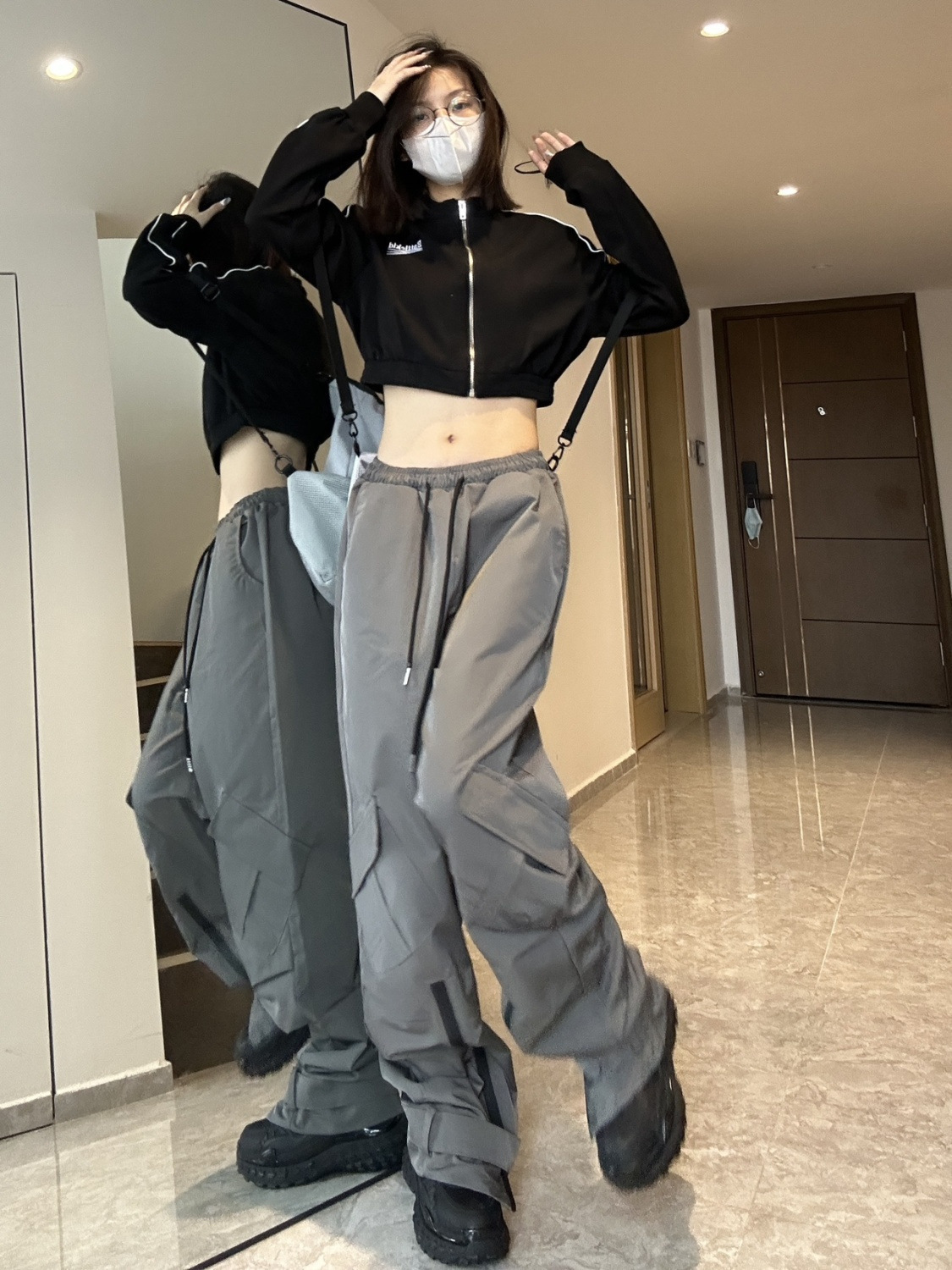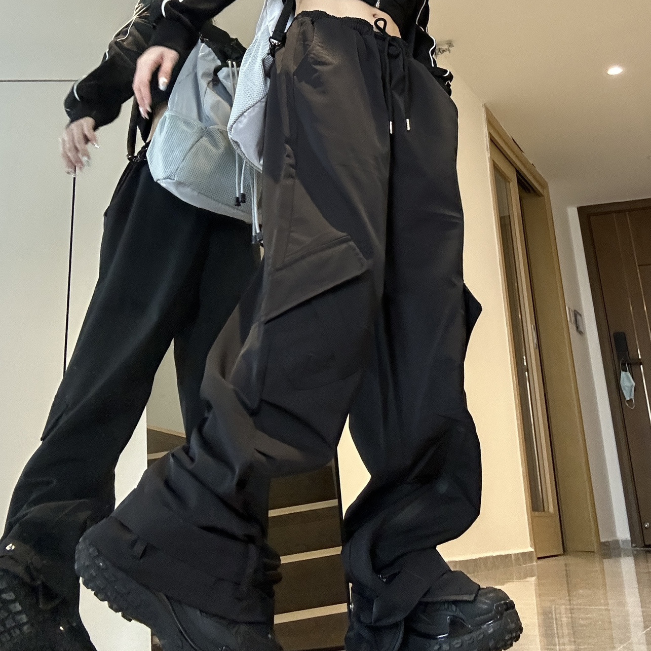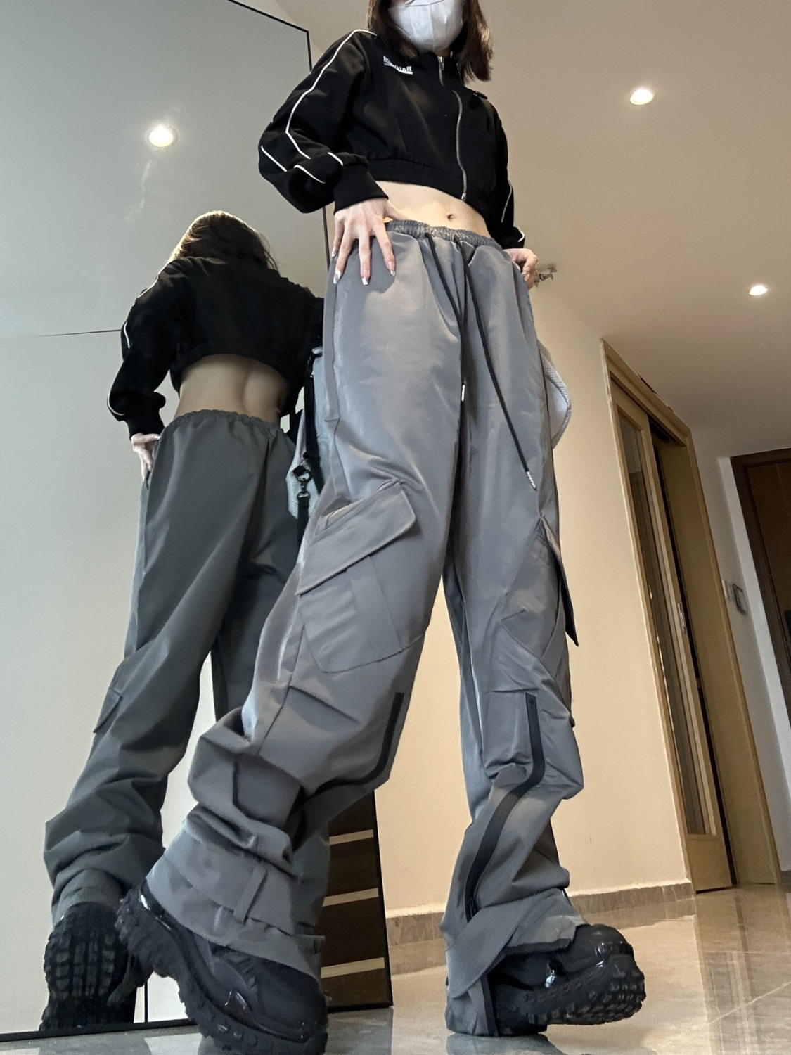 아메리칸 스타일 바이브 그레이 기능성 툴링 팬츠 여성용 아웃도어 방수 스트레이트 하이 스트리트 힙합 디자인 팬츠스토어 가기