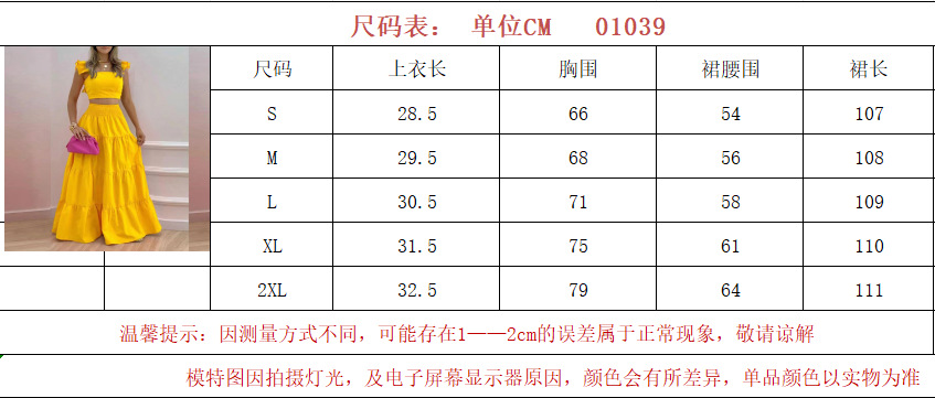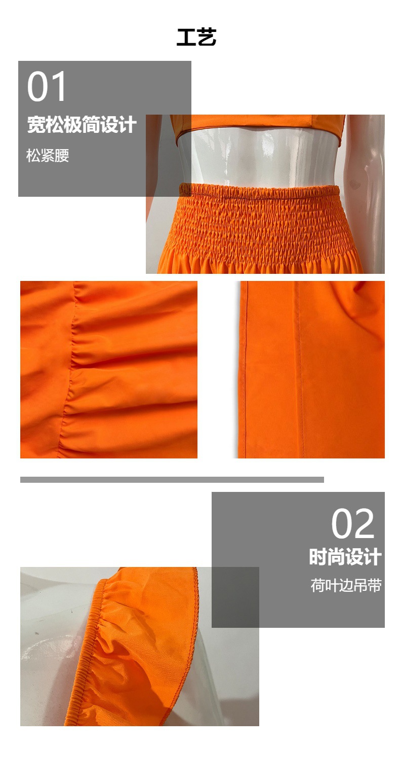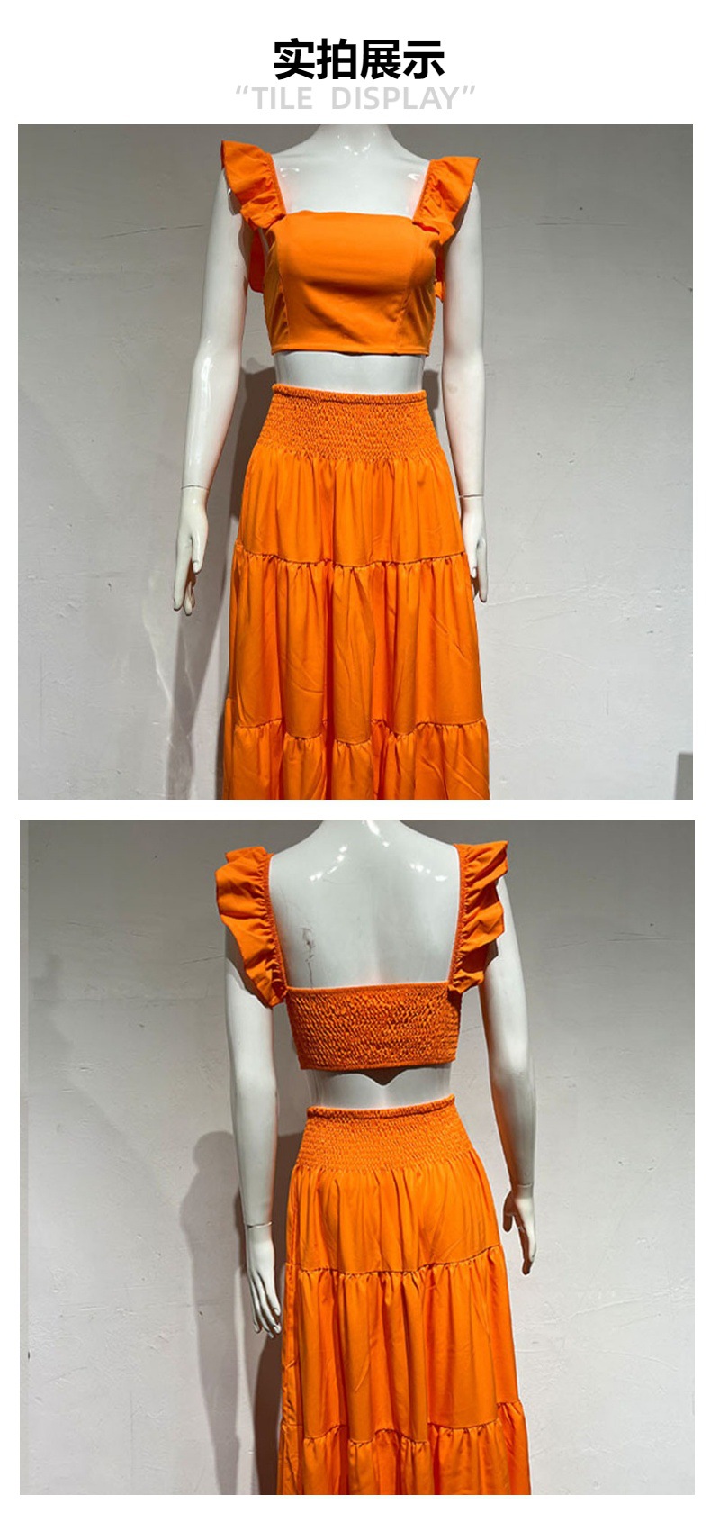 유럽과 미국의 국경 간 대외 무역 여성 솔리드 컬러 섹시한 스타일 프릴 프렌치 서스펜더 스커트 투피스 드레스 여성 정장스토어 가기