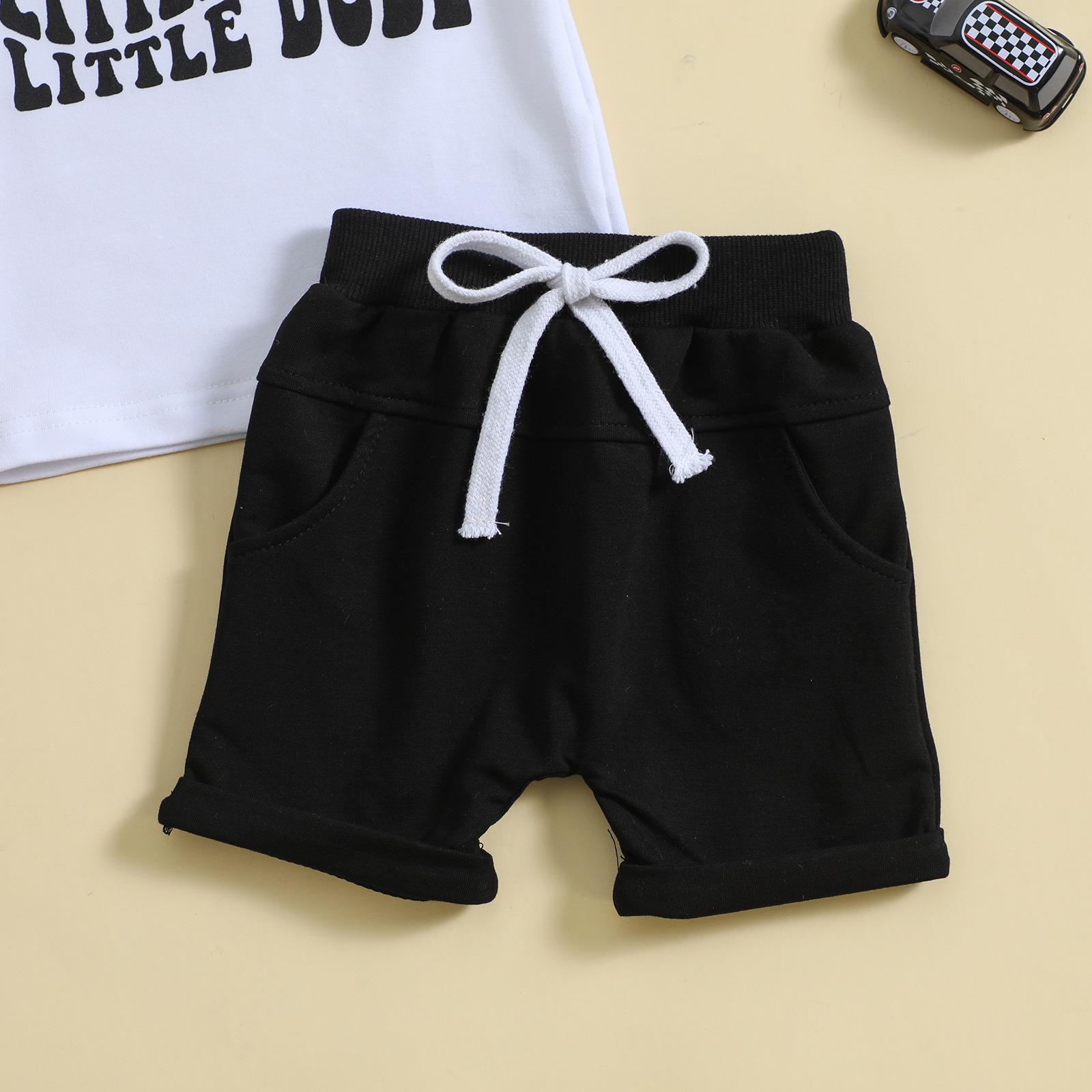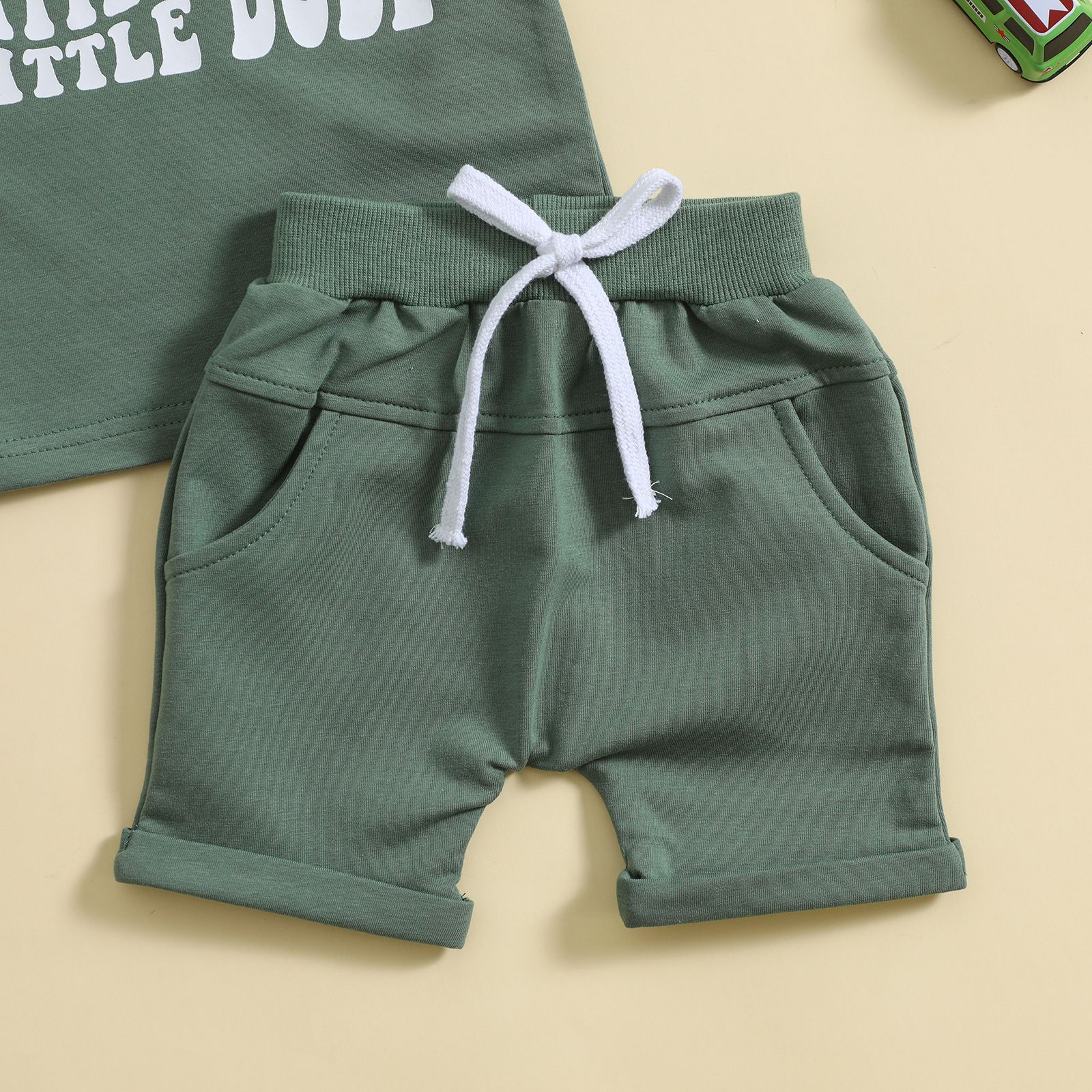아기와 유아 스포츠 세트 문자 반팔 티셔츠 재킷 단색 반바지 남성과 여성의 여름 옷 머리카락의 세대스토어 가기