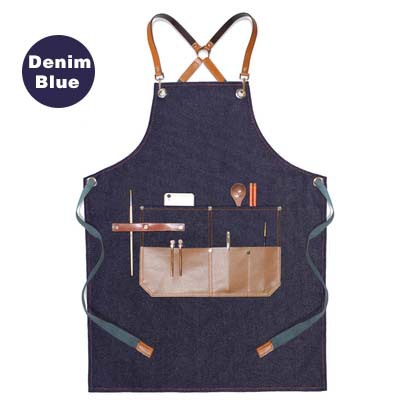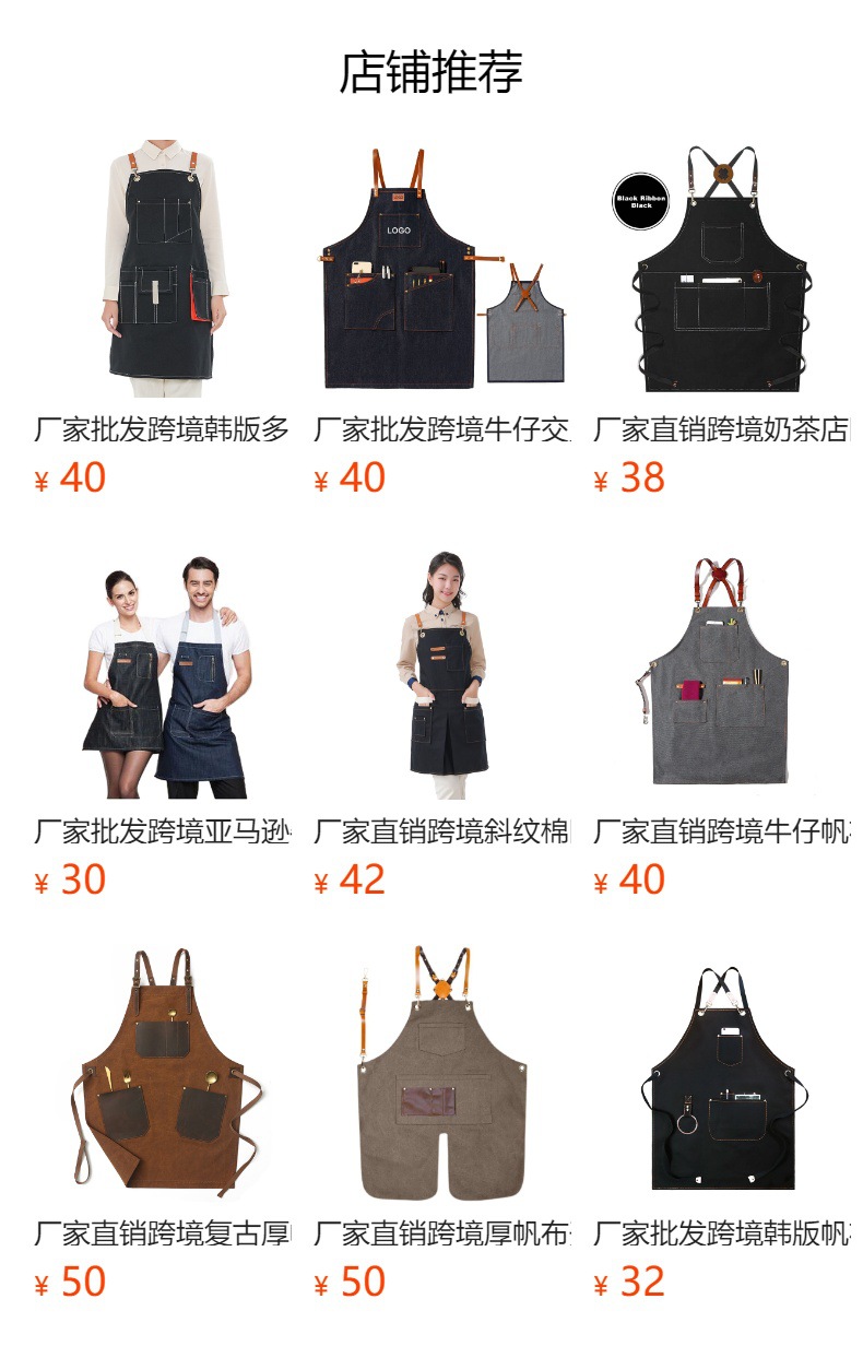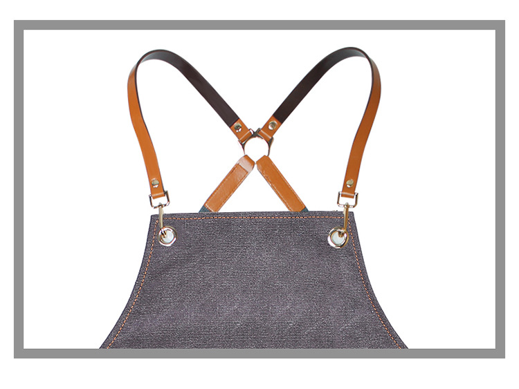 跨境牛仔围裙定制logo印字理发店美甲店咖啡店厚帆布耐磨工作围裙