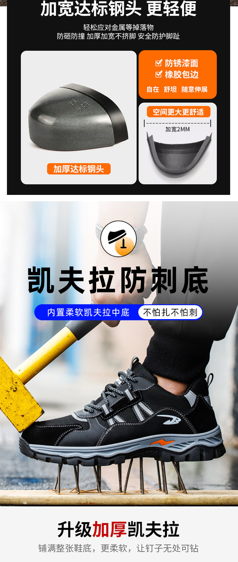 국경 간 패션 통기성 노동 보호 신발 남성 고무 미끄럼 방지 마모 방지 신발 스매싱 방지 및 피어싱 방지 노동 보호 신발 작업 신발스토어 가기