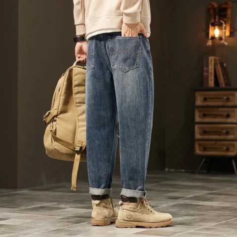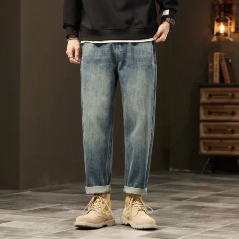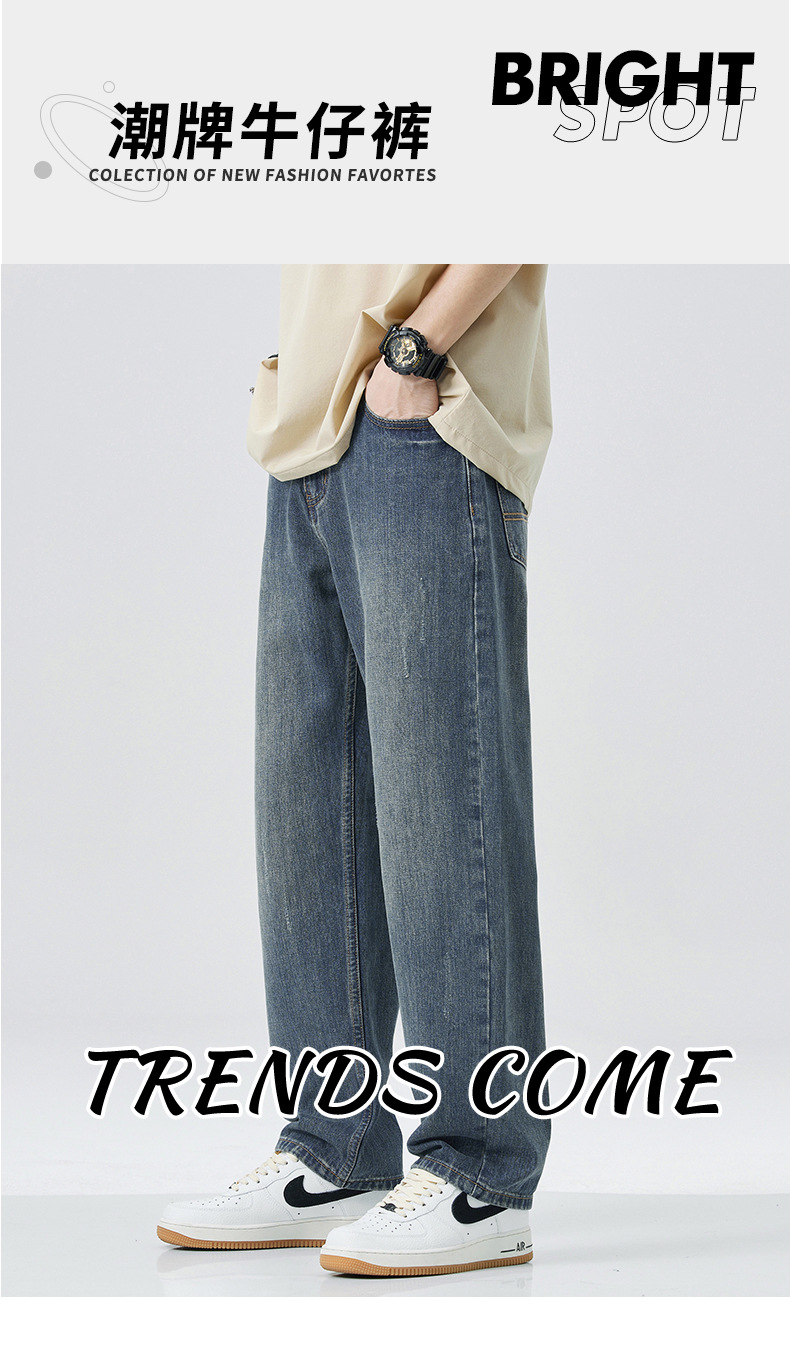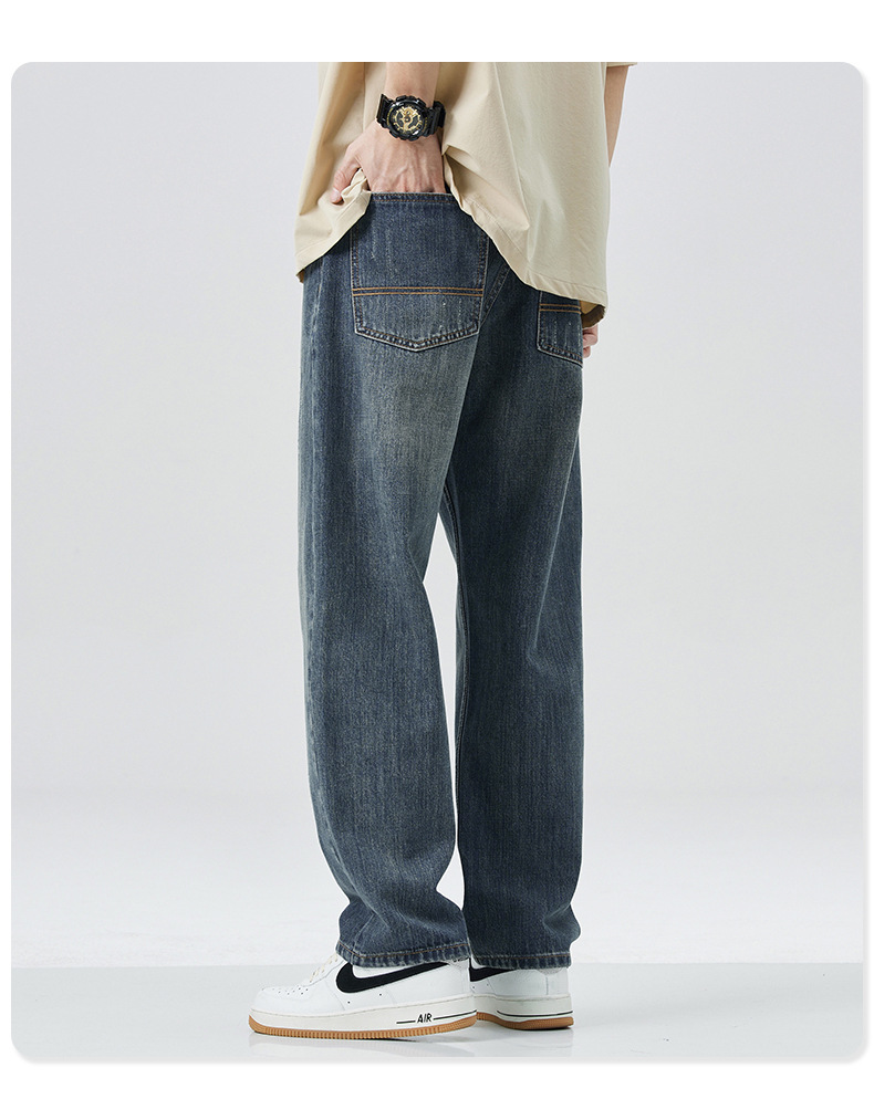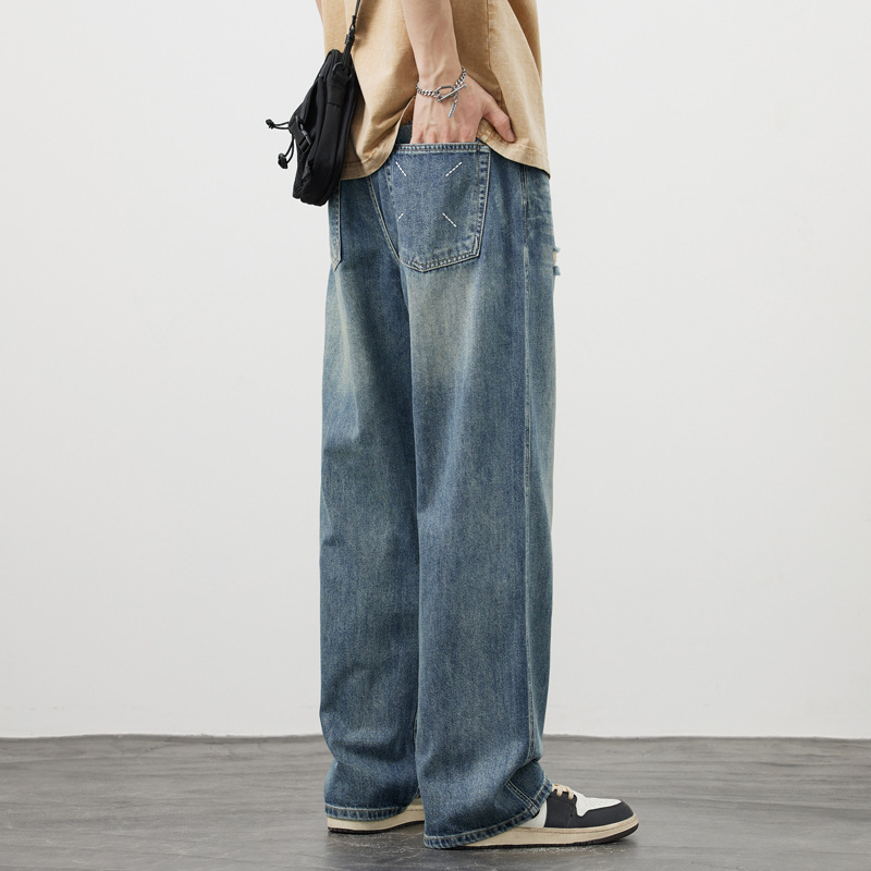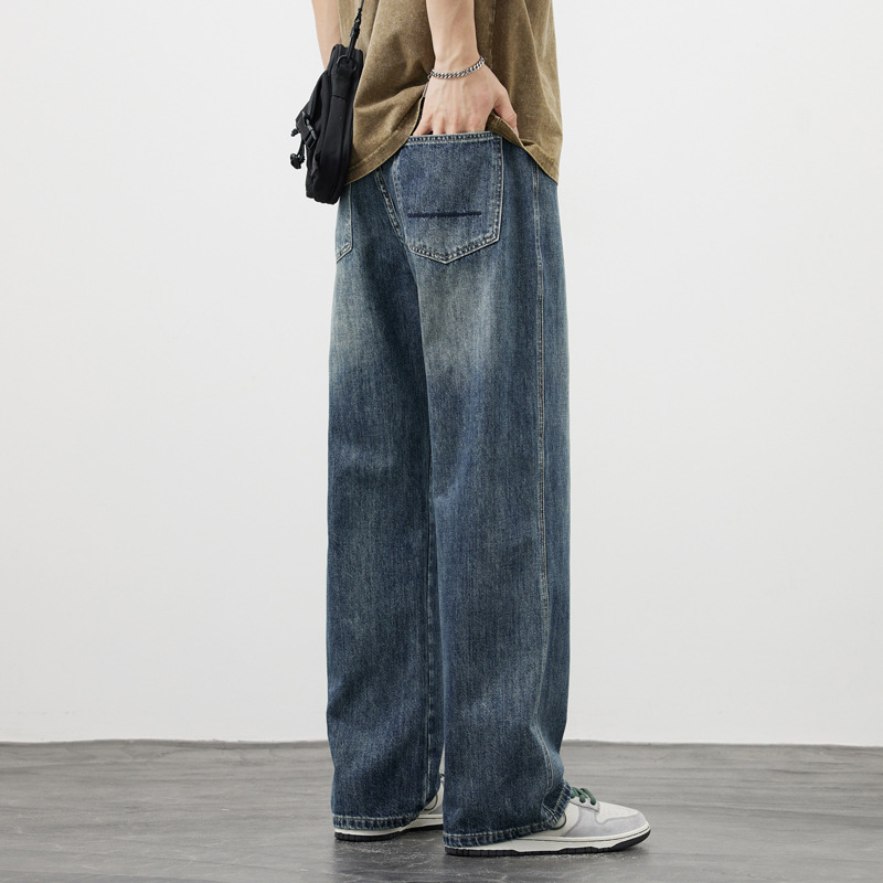 아메리칸 스타일 레트로 청바지 남자의 느슨한 스트레이트 하이 스트리트 유행 브랜드 모든 매치 캐주얼 바지 봄 새로운 스타일 걸레 바지스토어 가기