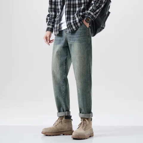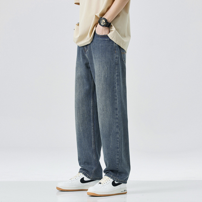 아메리칸 스타일 레트로 청바지 남자의 느슨한 스트레이트 하이 스트리트 유행 브랜드 모든 매치 캐주얼 바지 봄 새로운 스타일 걸레 바지