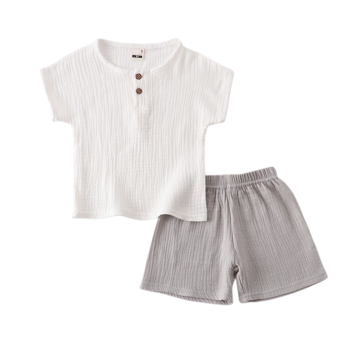 어린이 면 린넨 반팔 세트 여름 아동복 소년 소녀 아기 면사 단색 라운드 넥 반팔 반바지 얇은 투피스 세트스토어 가기