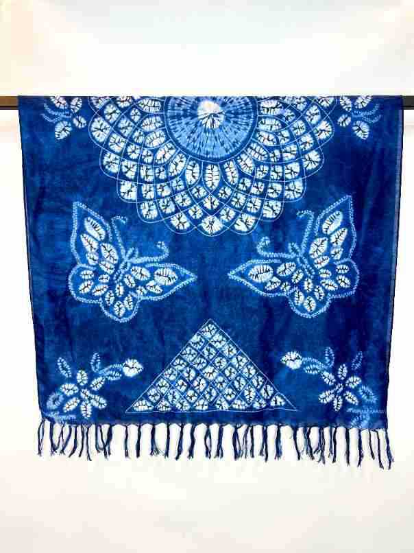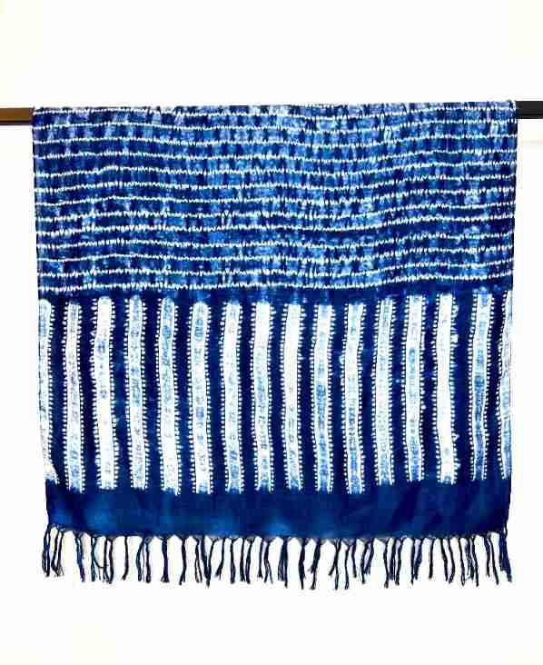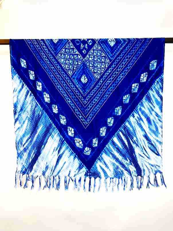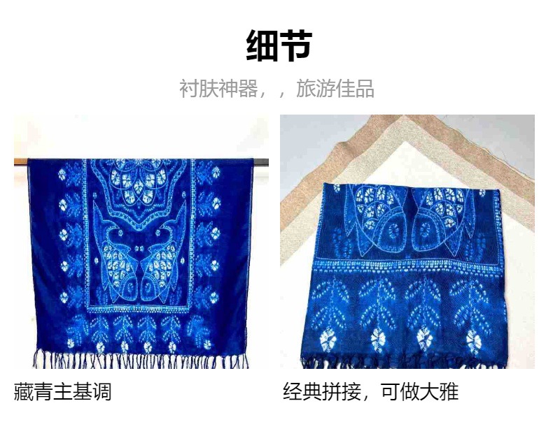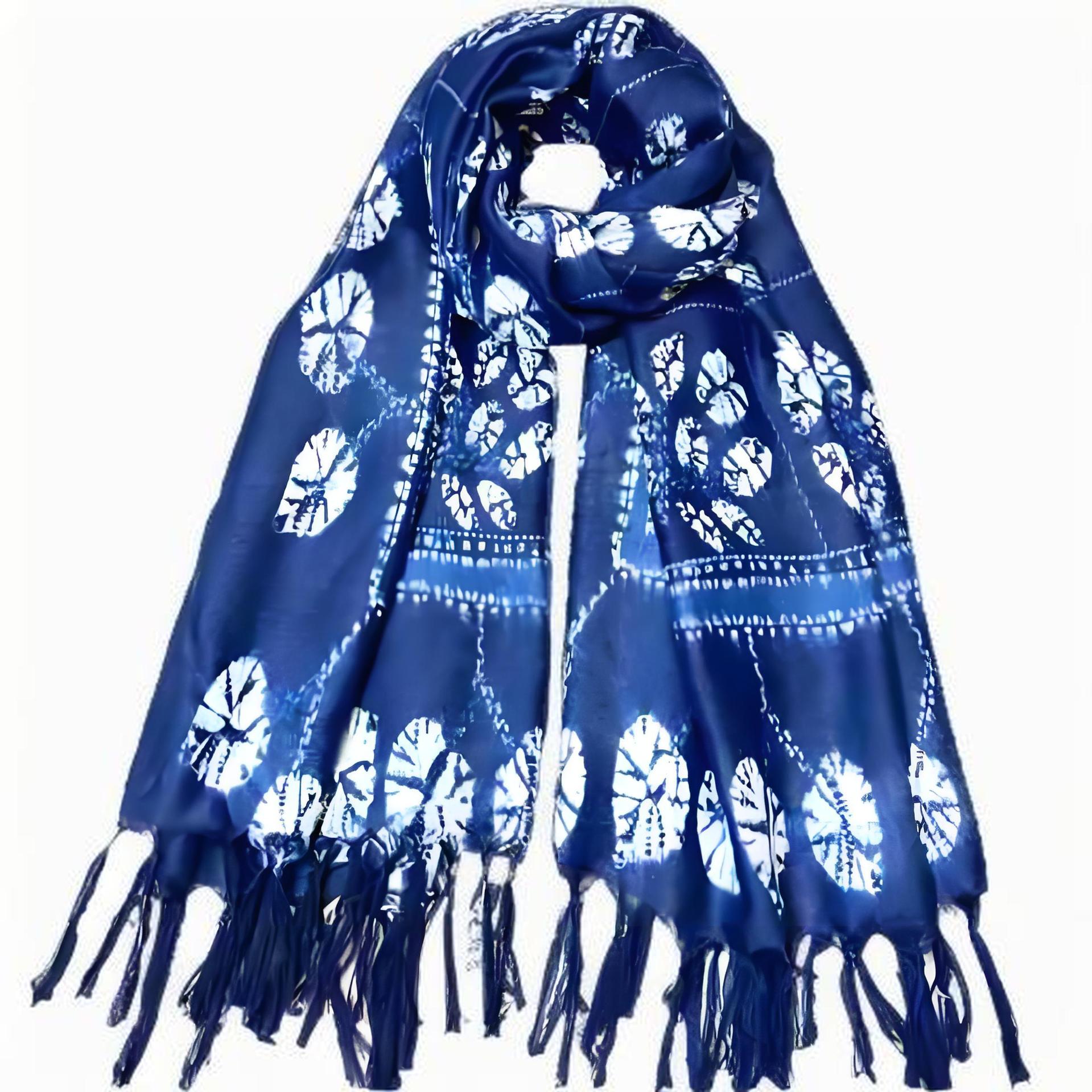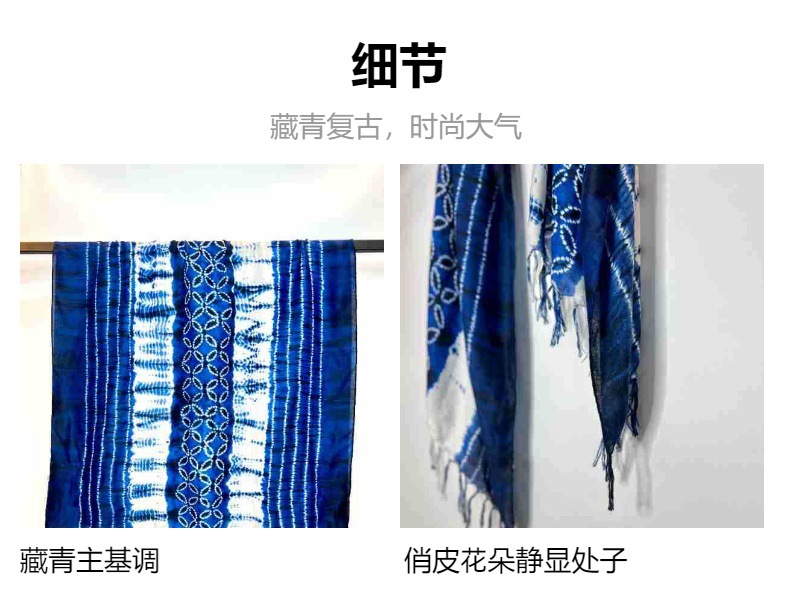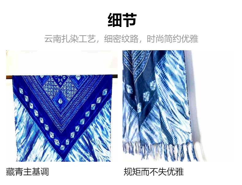 새로운 윈난 블루 염료 매듭 스카프 에스닉 스타일 타이 다이 레트로 대형 숄 롱 스플릿 바틱 티베트 블루 예술적 타올