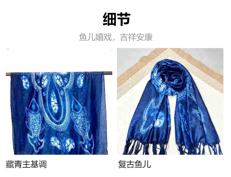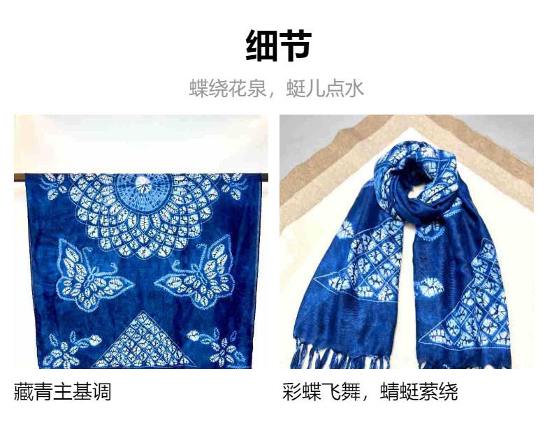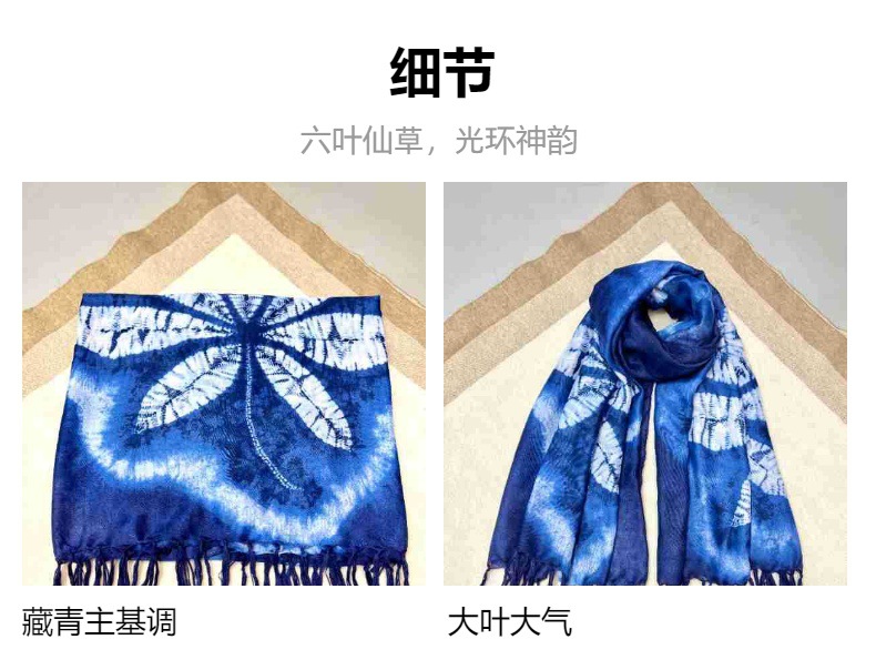 새로운 윈난 블루 염료 매듭 스카프 에스닉 스타일 타이 다이 레트로 대형 숄 롱 스플릿 바틱 티베트 블루 예술적 타올스토어 가기