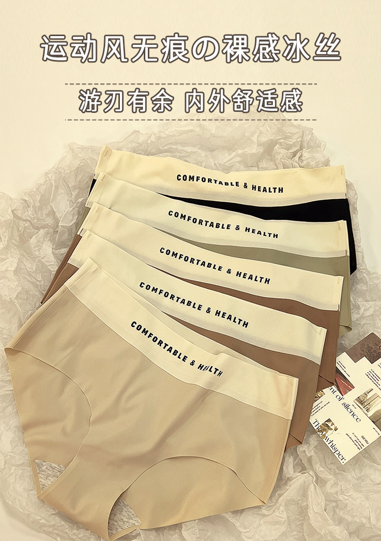 여름 속옷 여성용 아이스 실크 원활한 고탄성 소녀 소프트 TikTok 라이브 플러스 사이즈 중간 허리 여아 속옷 여성용스토어 가기