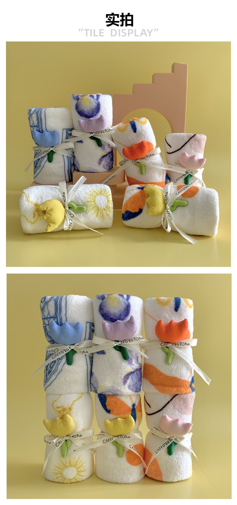 디지털 인쇄 튤립 시리즈 산호 양털 선물 타월 웨딩 숍 축하 축제 선물 페이스 타올 스퀘어 타올스토어 가기
