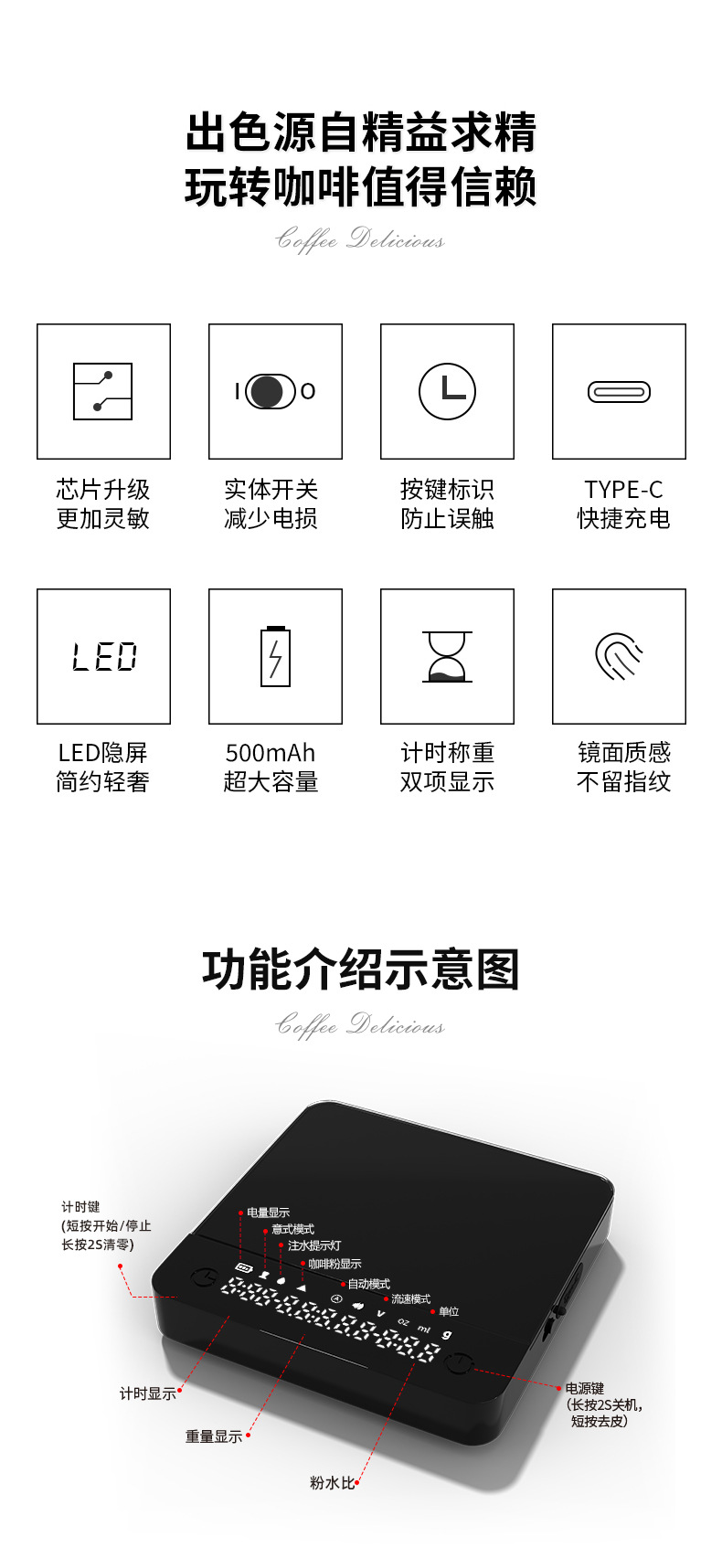 FRK 홈 커피 전자 스케일 미니 핸드 타이밍 커피 전자 주방 스케일 USB 이탈리아 유리 커피 스케일