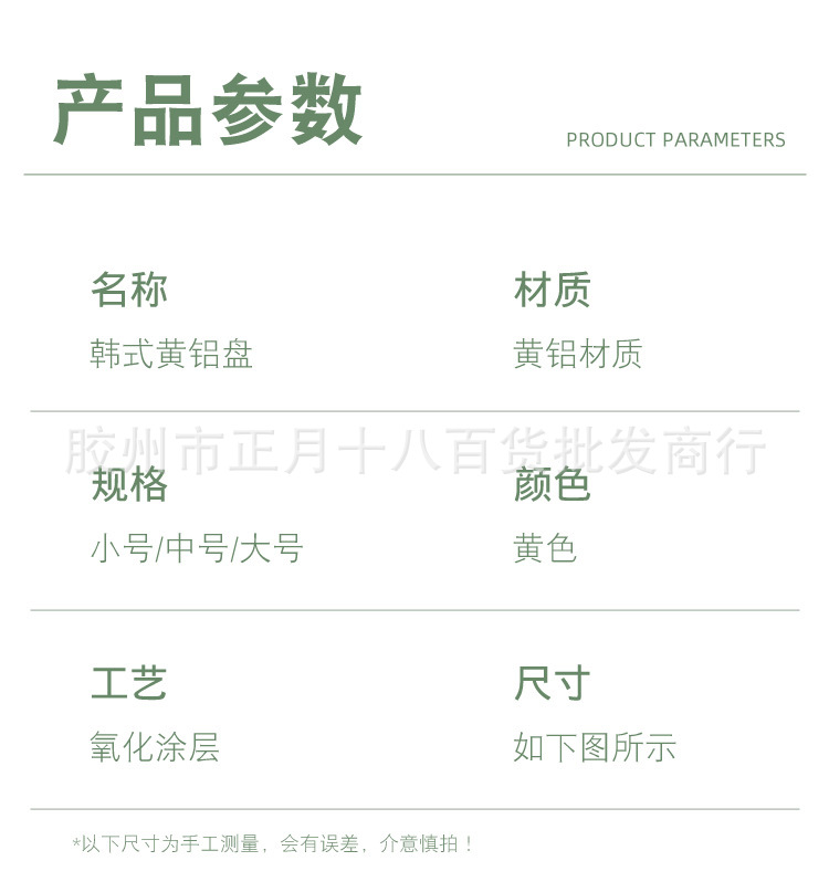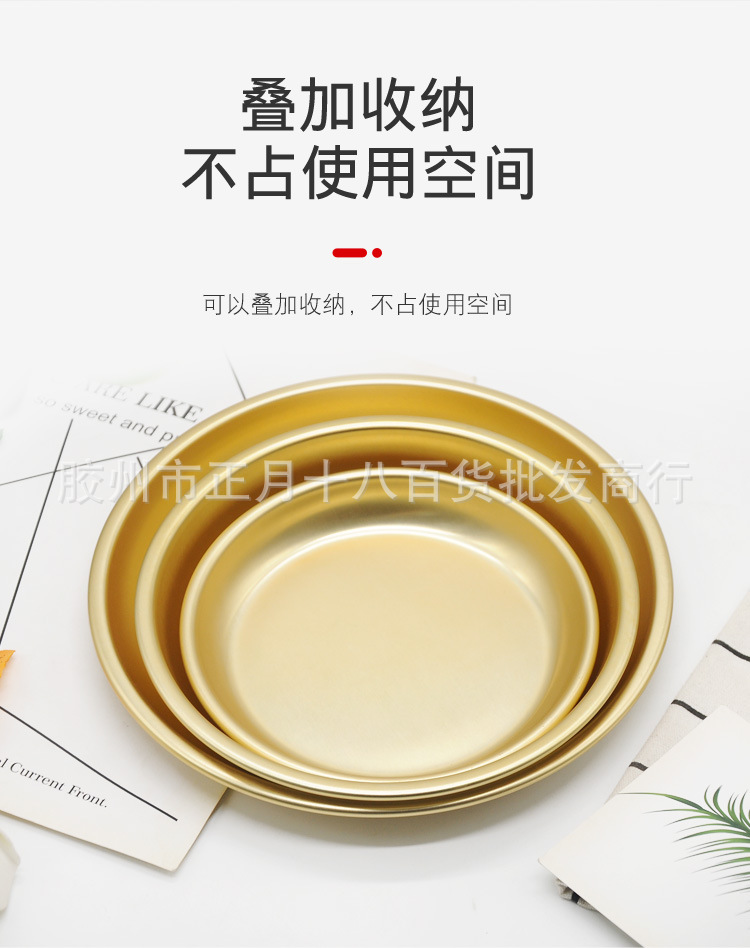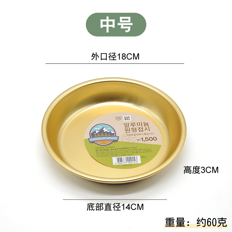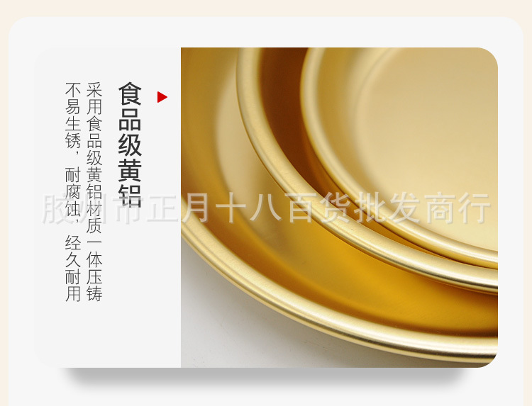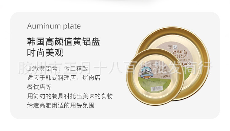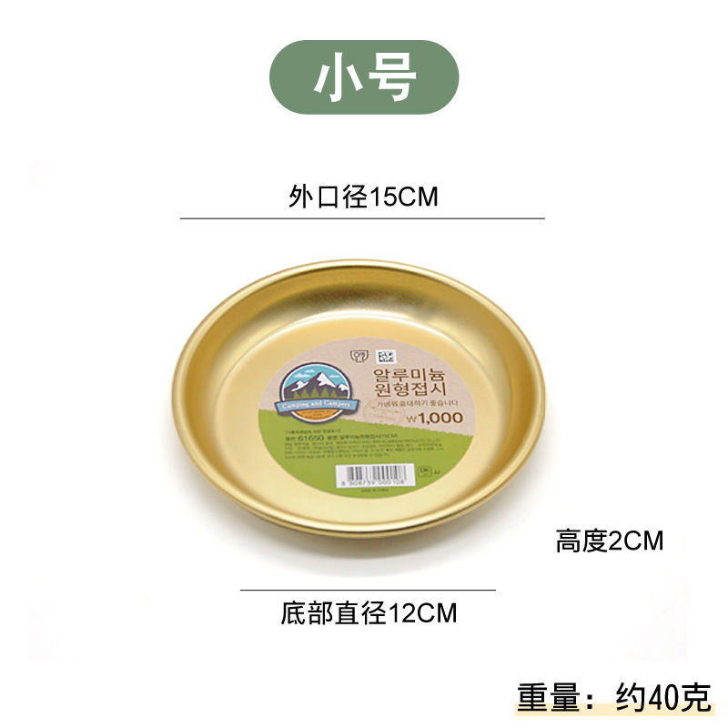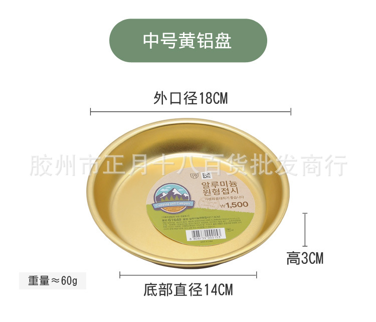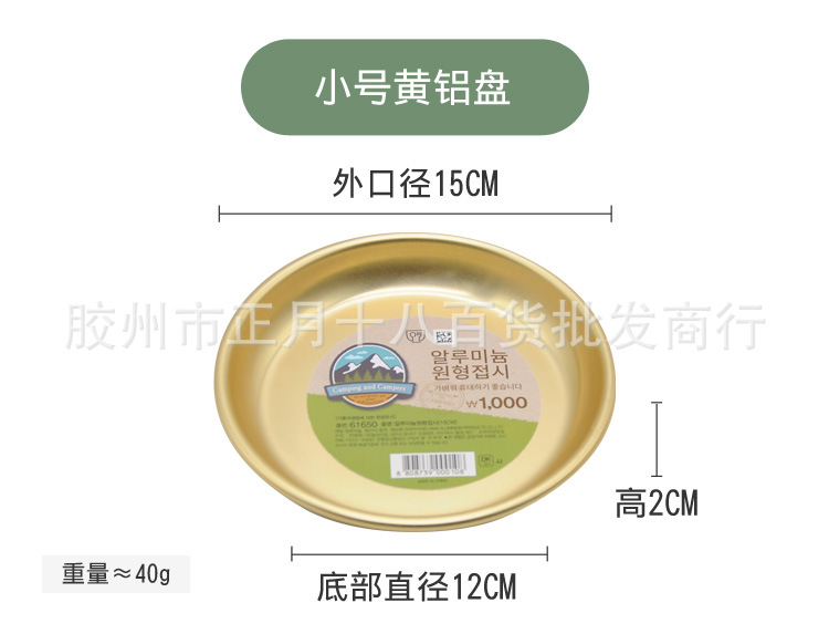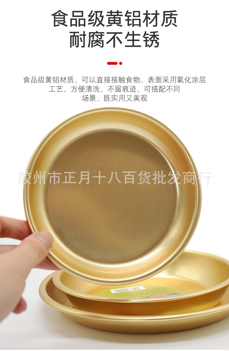 韩国料理店、饭店很受欢迎的一款黄铝小盘~欢迎咨询批发 产品分为15CM/18CM/21.3CM三个型号