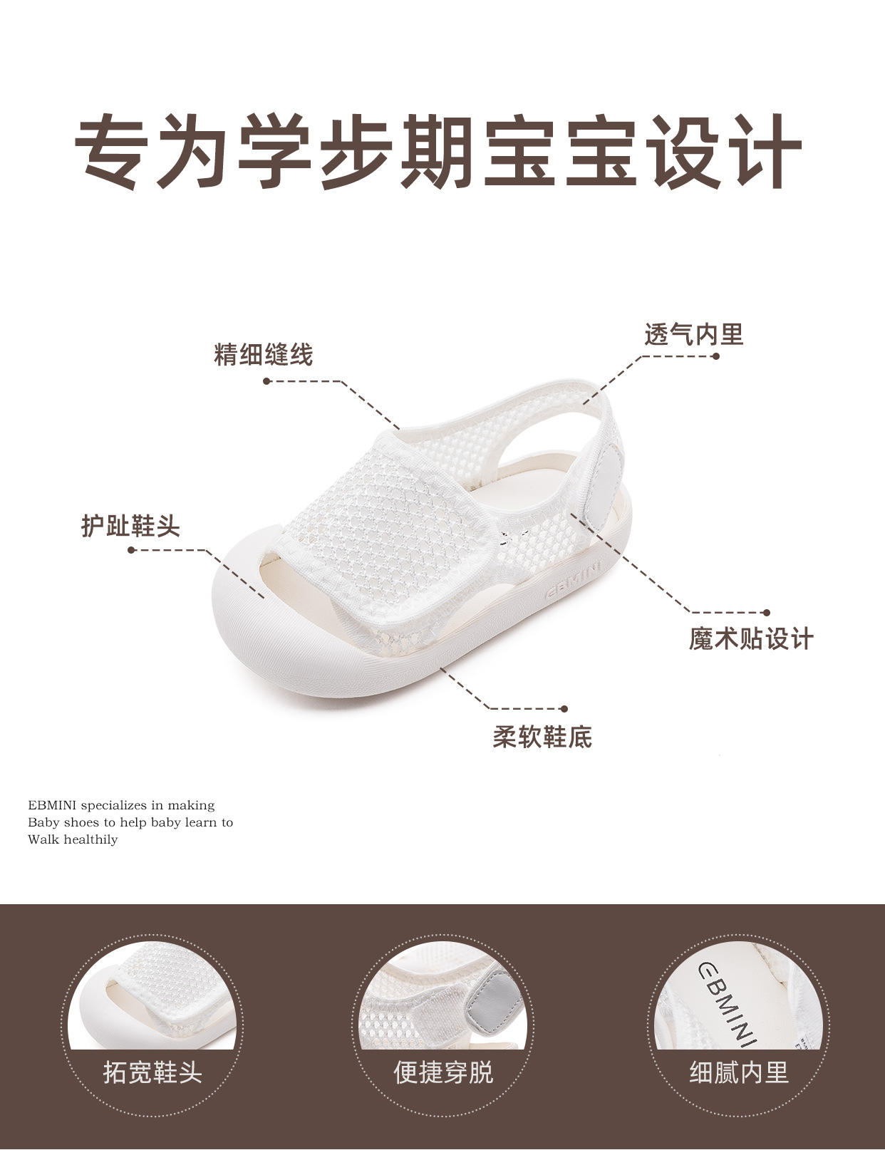Yingbei Minnie EBMINI 유아 신발 여름 샌들 미끄럼 방지 부드러운 바닥 어린이 통기성 신발 남성용 메쉬 아기 소녀스토어 가기