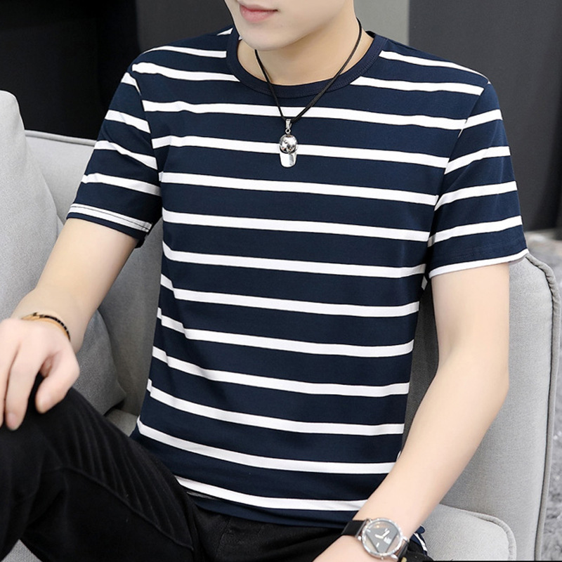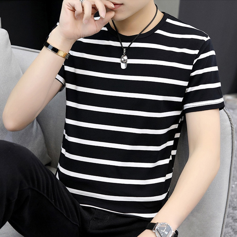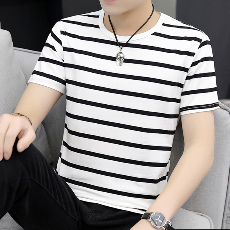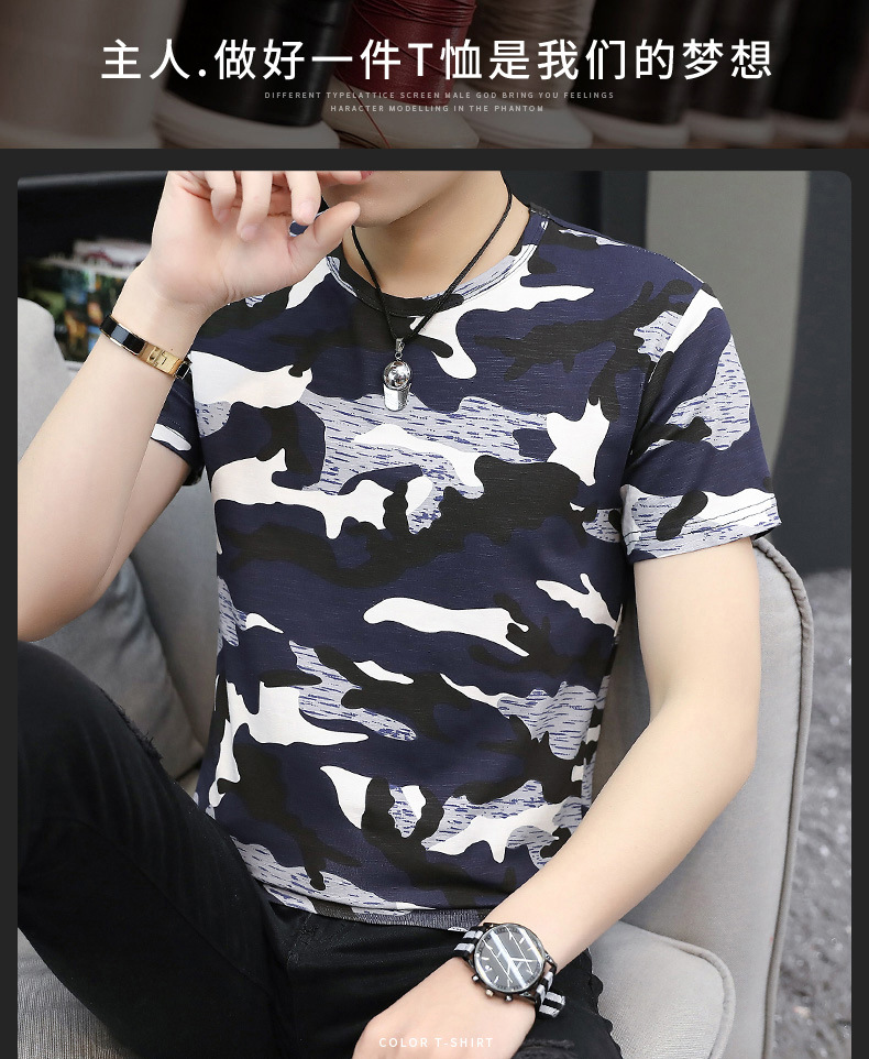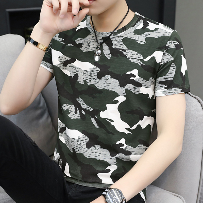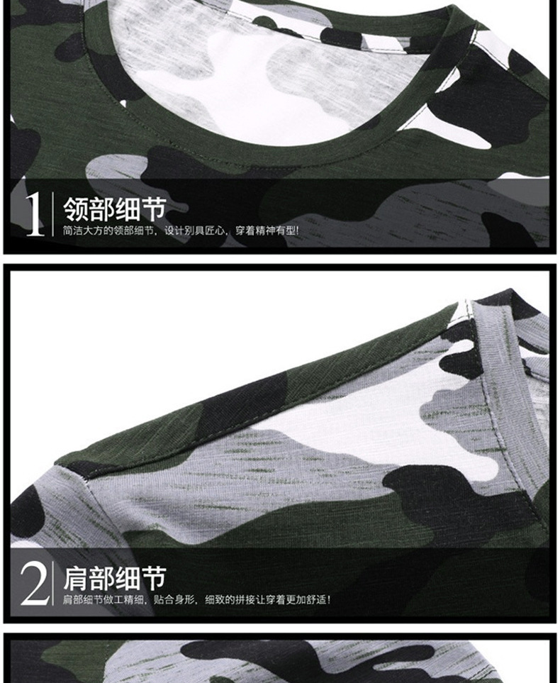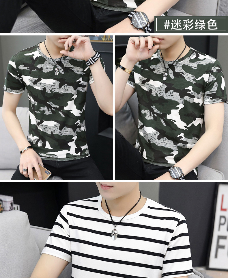 새로운 여름 반팔 티셔츠 남성베이스 셔츠 위장 스트라이프 트렌디 한 라운드 넥 청소년 군사 훈련 스포츠 레저스토어 가기