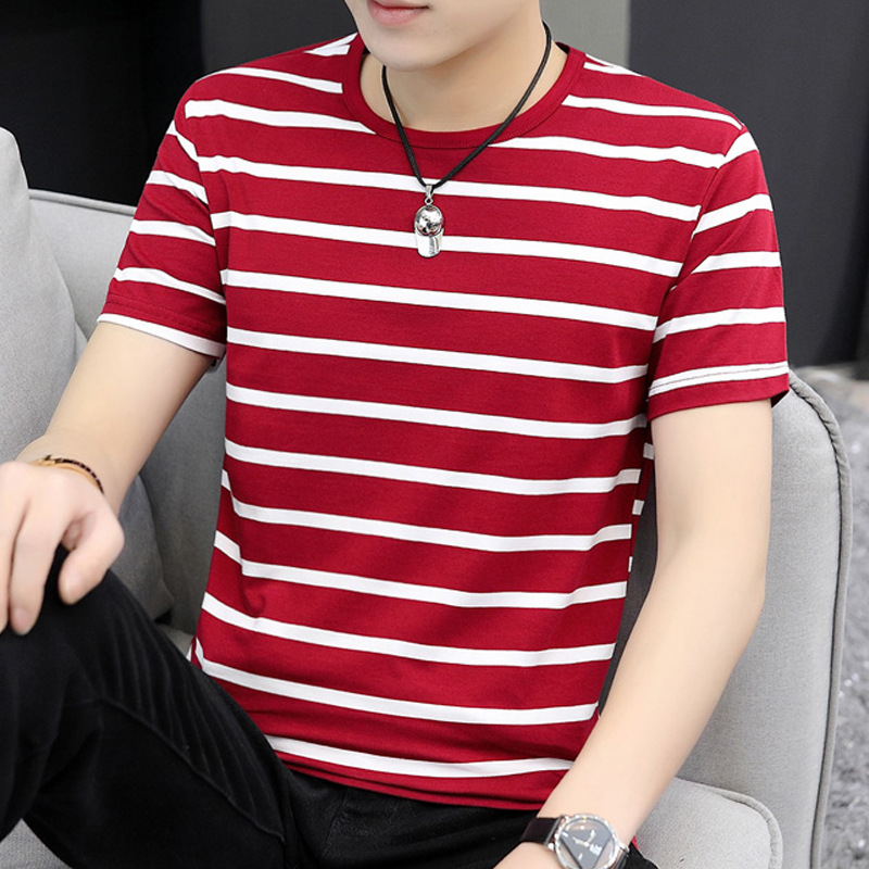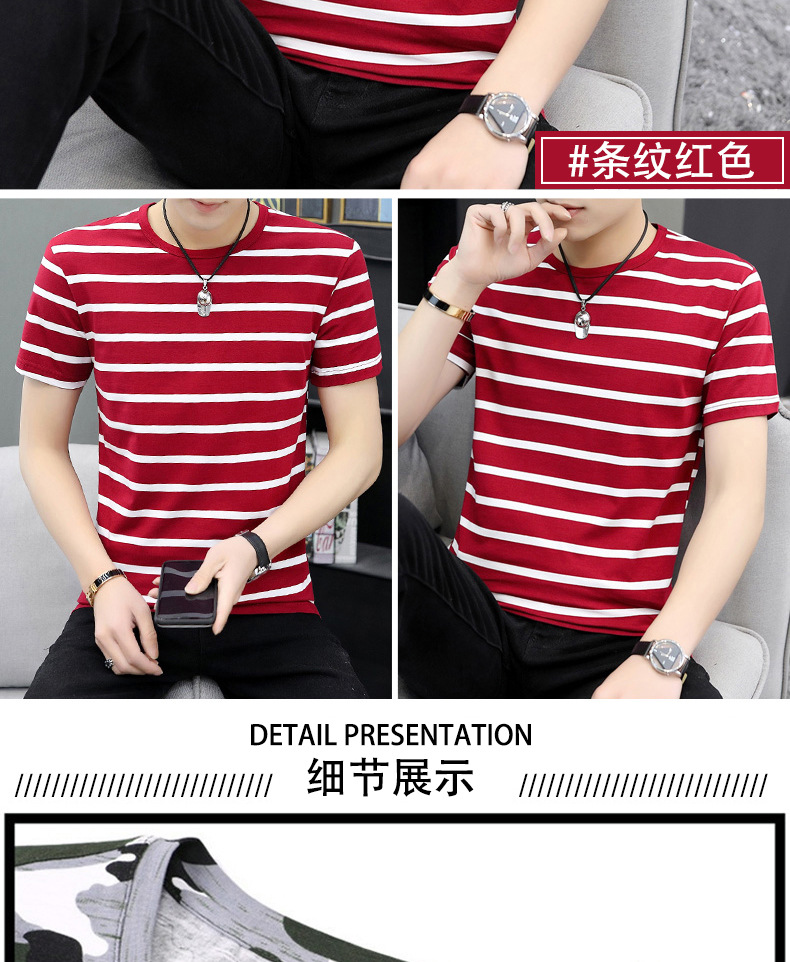 새로운 여름 반팔 티셔츠 남성베이스 셔츠 위장 스트라이프 트렌디 한 라운드 넥 청소년 군사 훈련 스포츠 레저