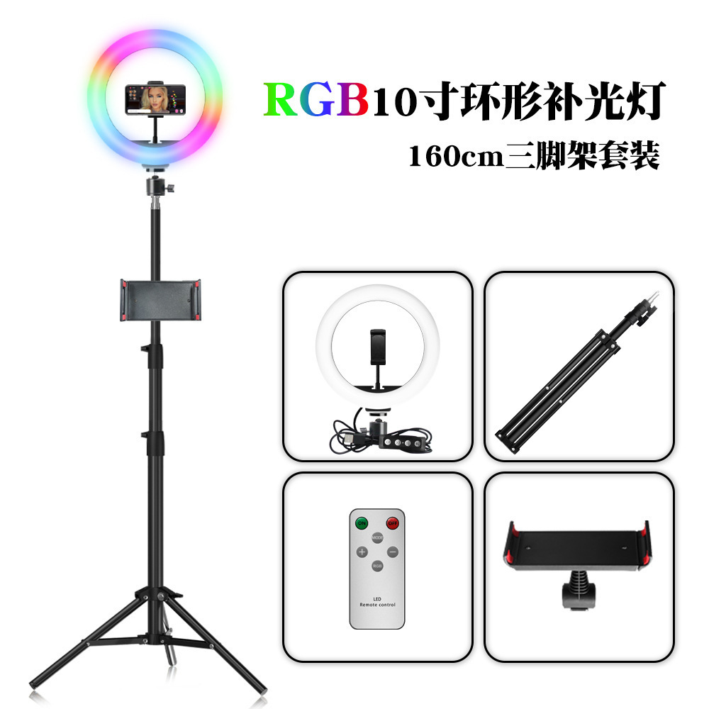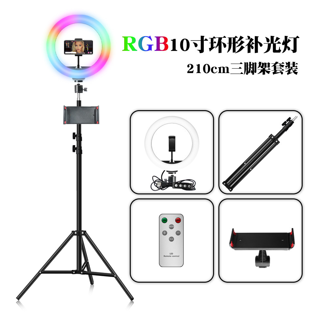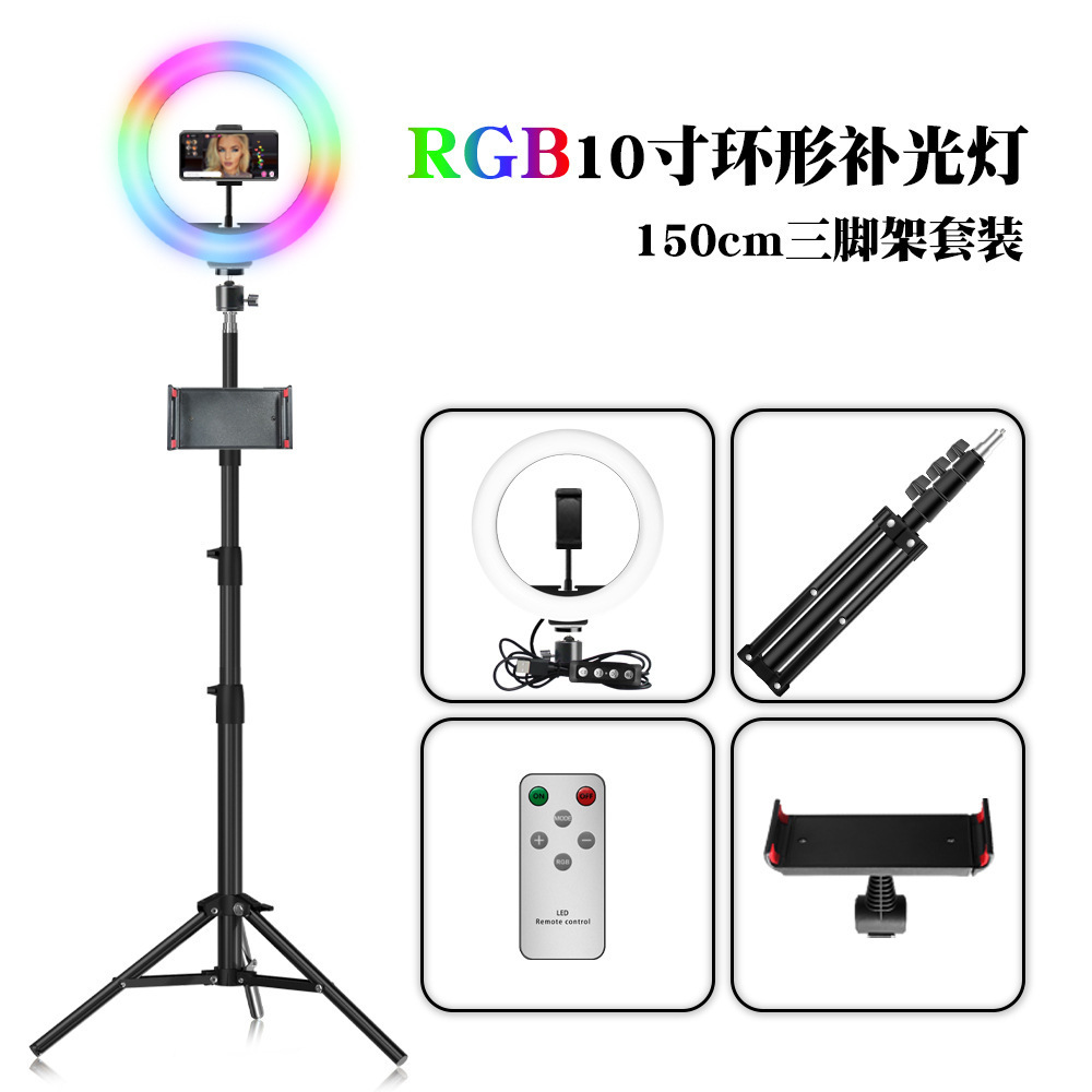 • 10 인치 RGB + 램프 링 리모콘 + 150 (두껍게) cm 램프 스탠드 플랫 클램프 세트