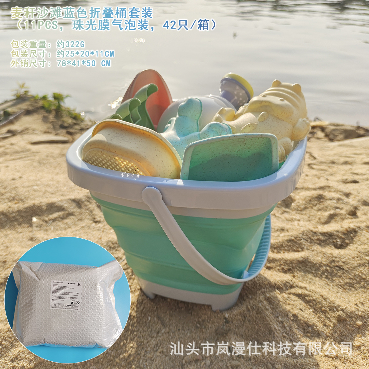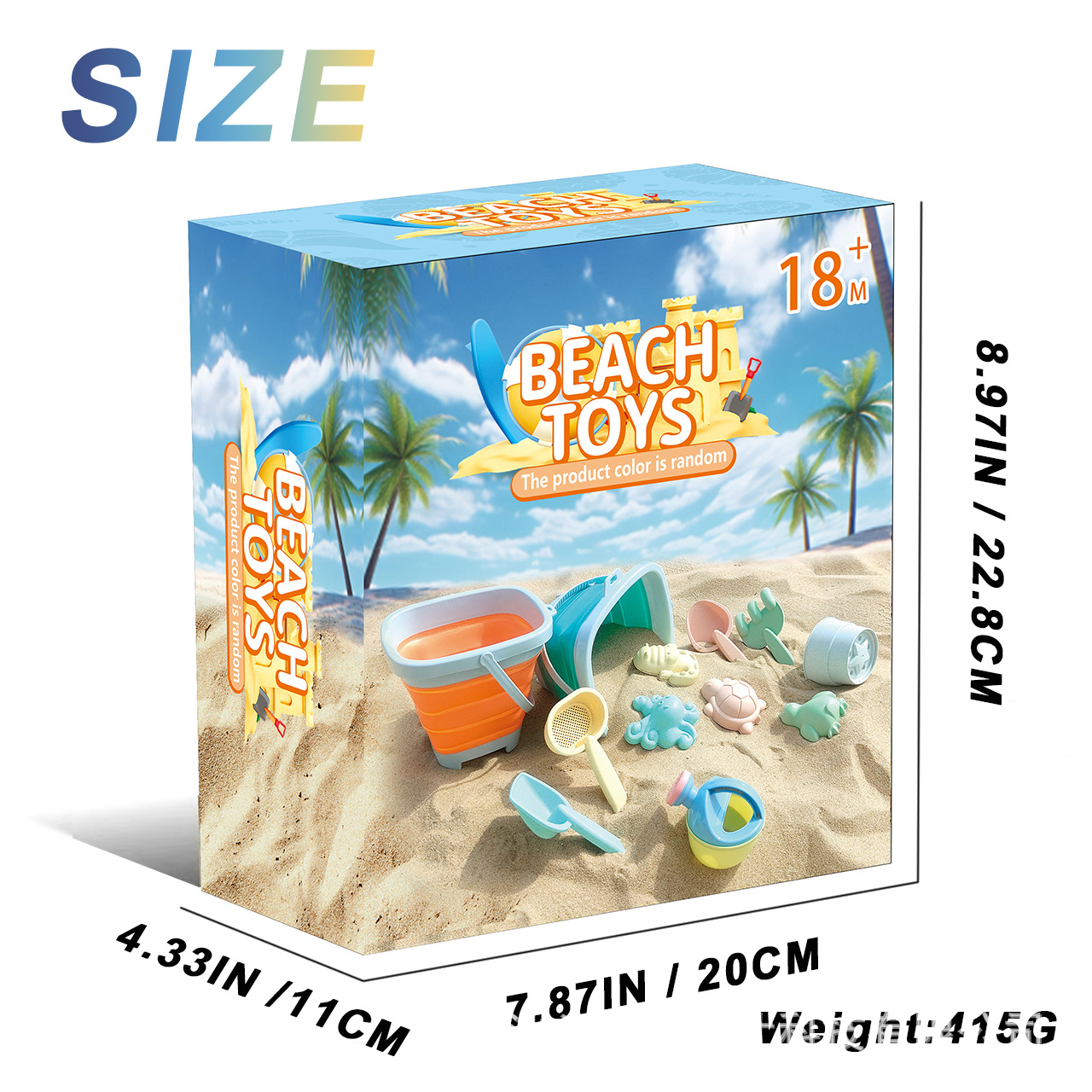 • 밀짚 비치 블루 접이식 버킷 세트 (11PCS, 컬러 박스, 상자에 24 상자)