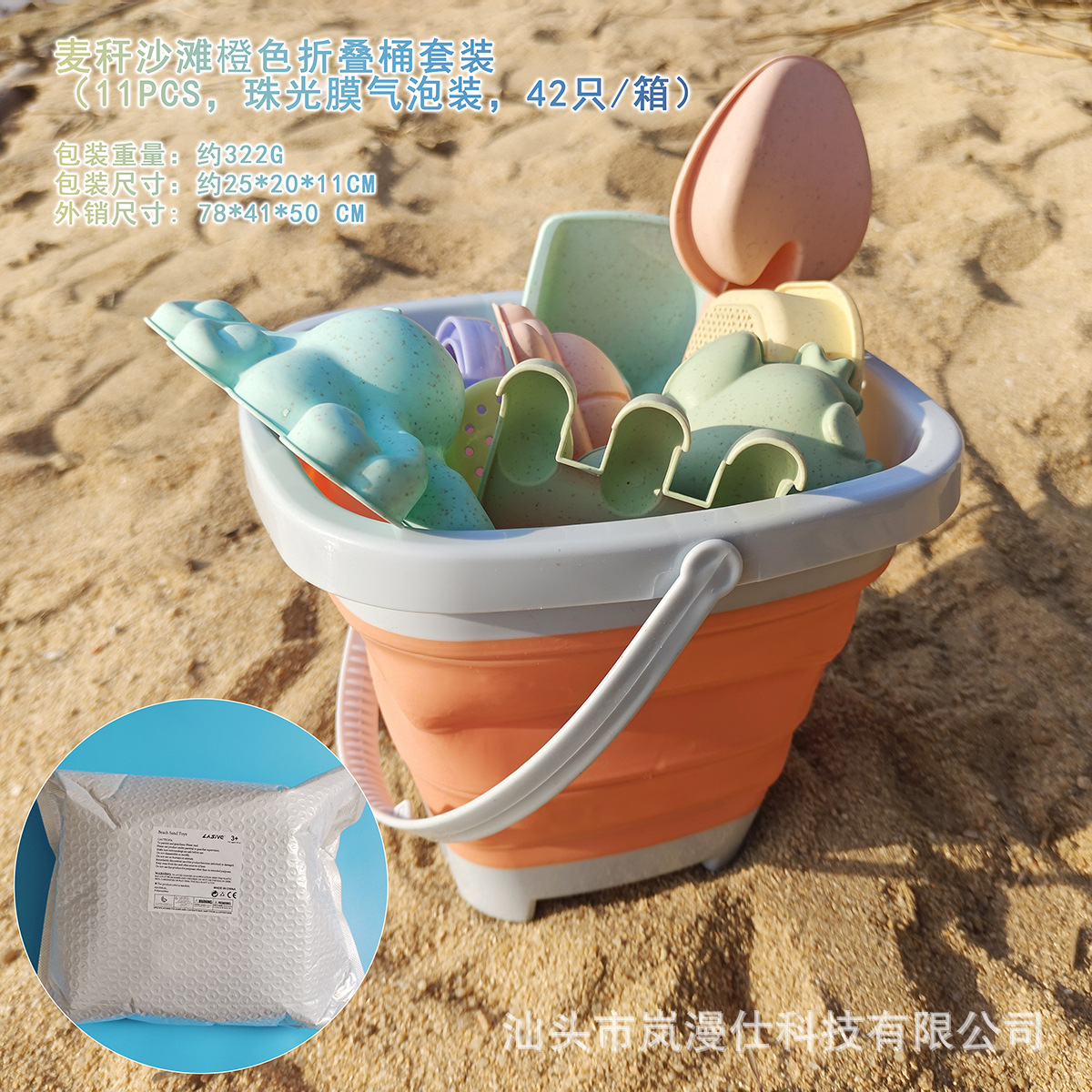 • 밀짚 해변 오렌지 접이식 버킷 세트 (11PCS, 컬러 박스, 상자에 24 상자)