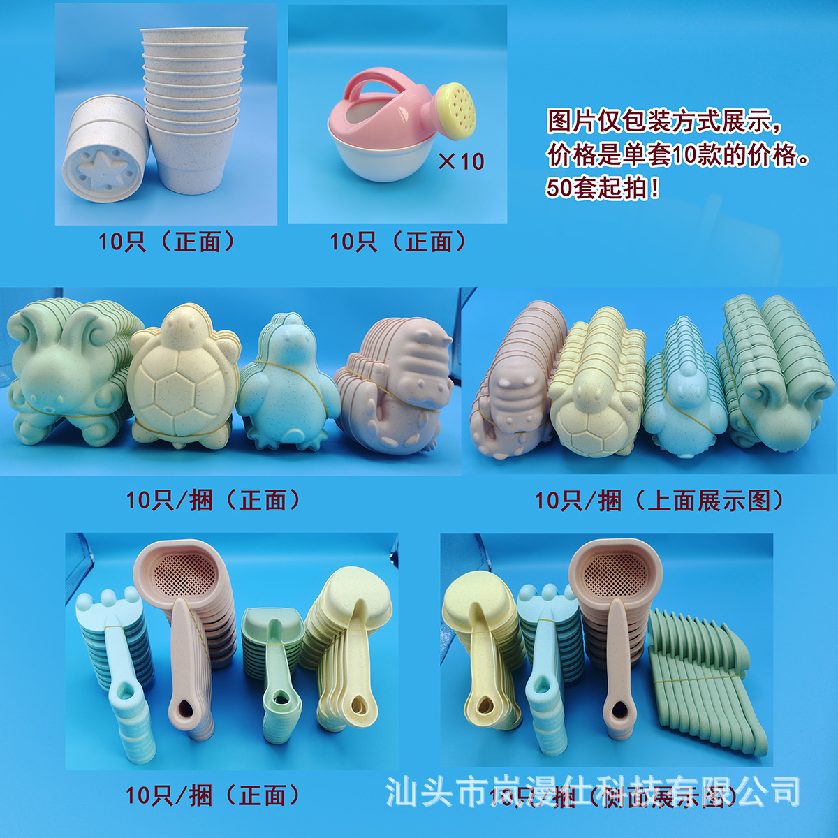 鉴于生产需求,麦秆沙滩玩具套装除折叠桶外,其他10个产品发货颜色将随机搭配(颜色均匀搭配),形状不变。