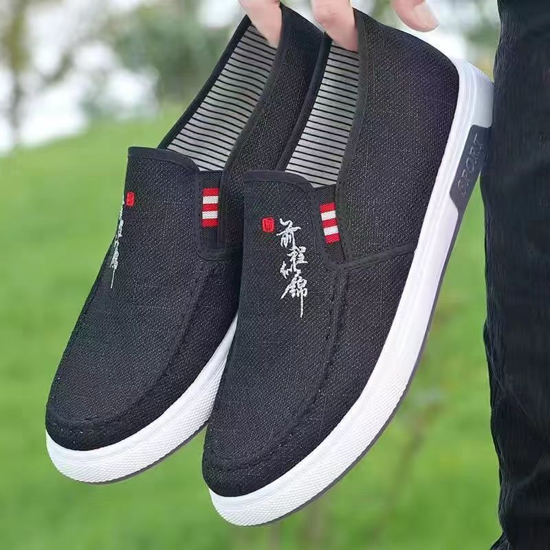 남성용 올드 베이징 천 신발 2023 경량 슈퍼 통기성 캔버스 신발 편안한 부드러운 아빠 슬립온 작업 신발