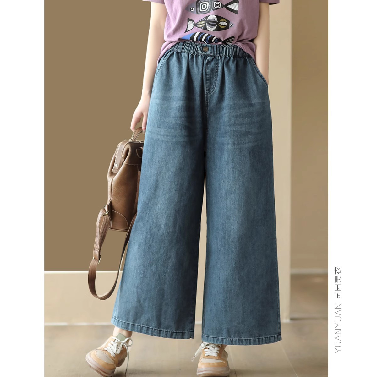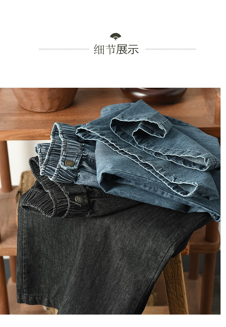 여름 새로운 빈티지 원사 염색 코튼 진 여성용 슬리밍 하이 웨이스트 스트레이트 레그 팬츠 캐주얼 팬츠 와이드 레그 팬츠 2223