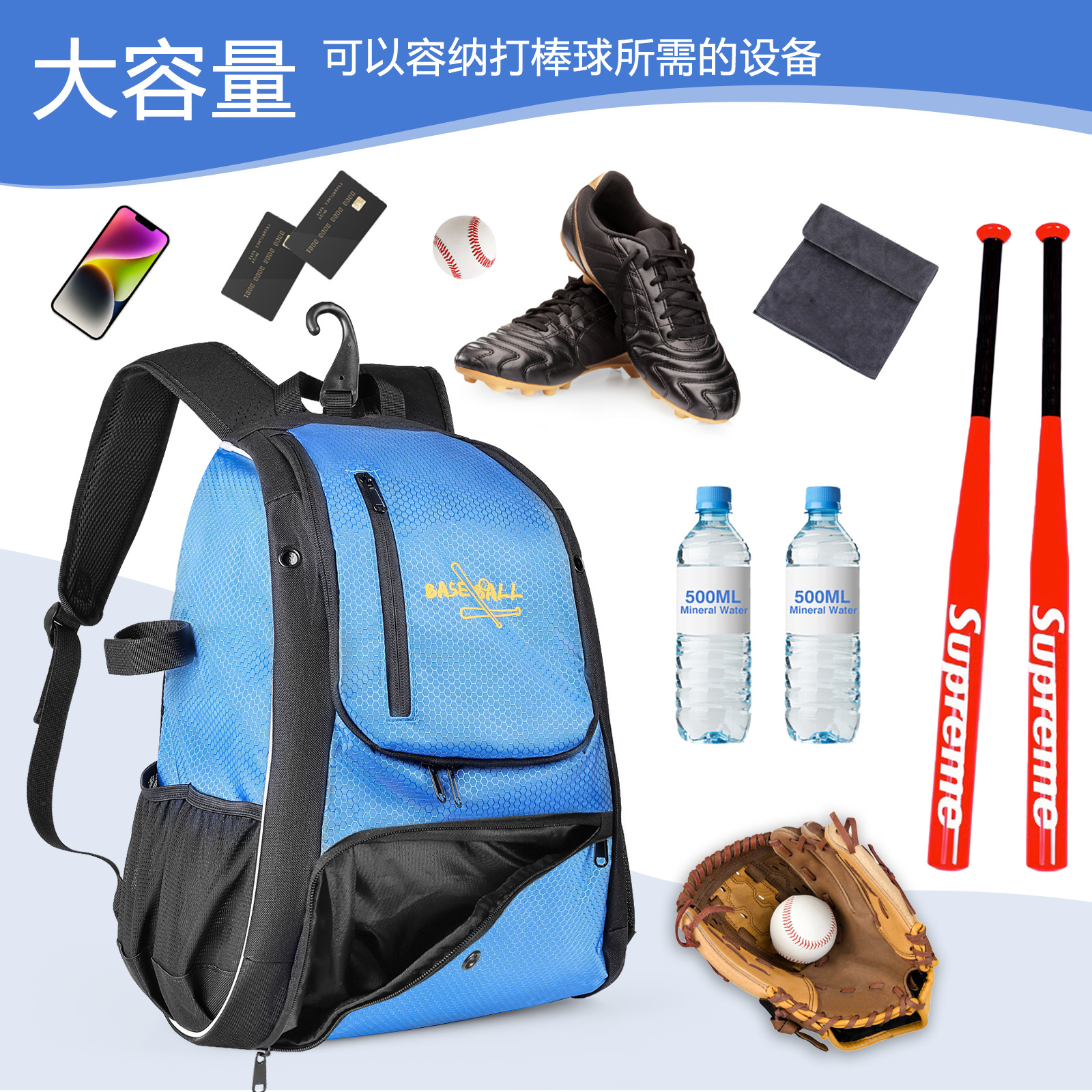 크로스-보더 재고 소프트볼 장비 대용량 야구 배낭 다기능 방수 스포츠 용품 보관 배낭스토어 가기
