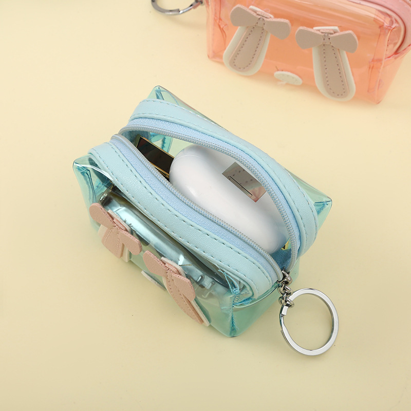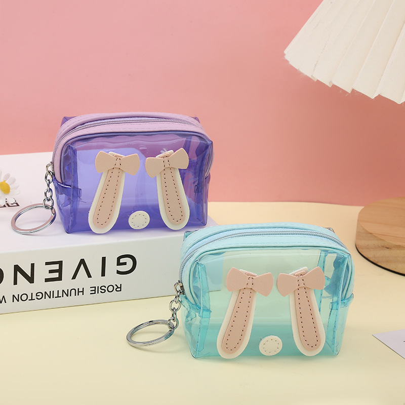 한국 새로운 지갑 소녀 하트 투명 동전 지갑 학생 미니 동전 열쇠 고리 가방 재고 도매