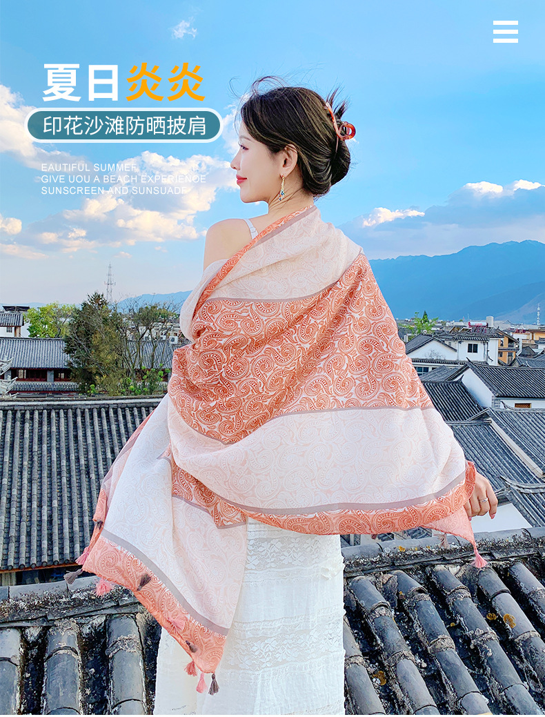 여름 패션 빈티지 캐슈 오렌지 라이스 스카프 양산 선 스크린 플레이 비치 타월 트렌드 편안한 통기성 큰 숄