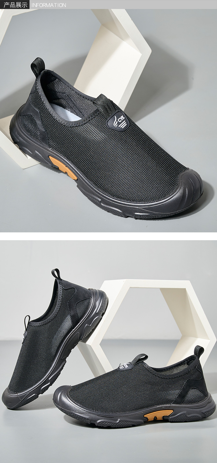 스팟 2024 여름 새로운 메쉬 통기성 남성 신발 캐주얼 편안한 부드러운 바닥 충돌 방지 헤드 아빠 신발 공장 직접 판매