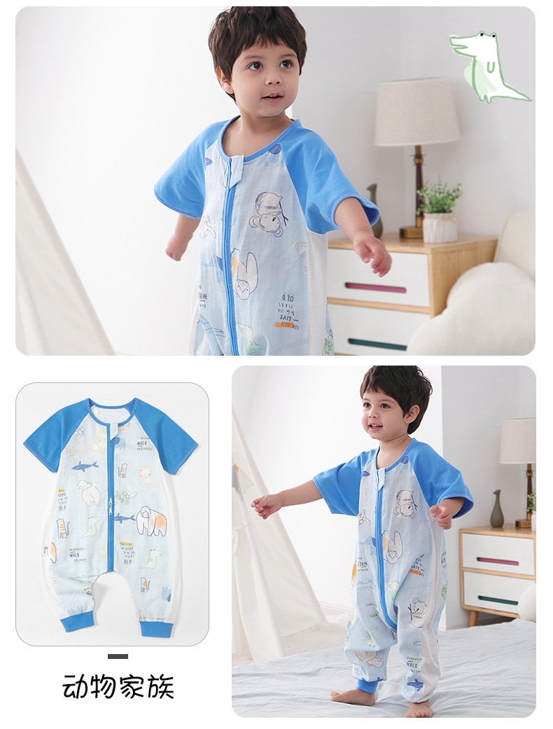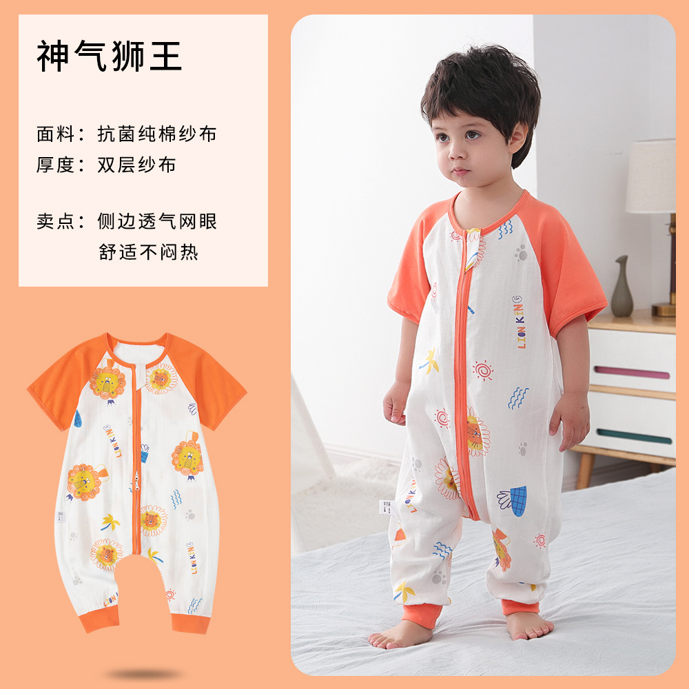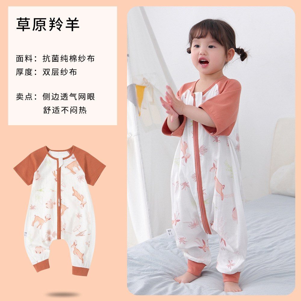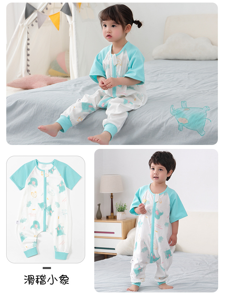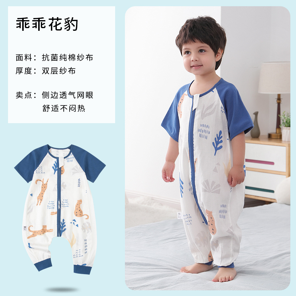 아기 침낭 여름 더블 거즈 잠옷 반팔 순면 아기 다리 침낭 어린이 점프 슈트 카테고리 A 얇은