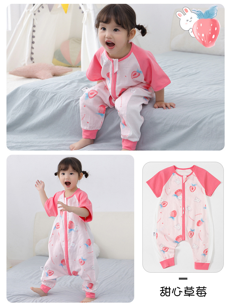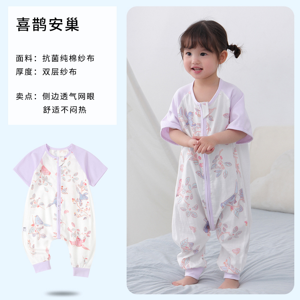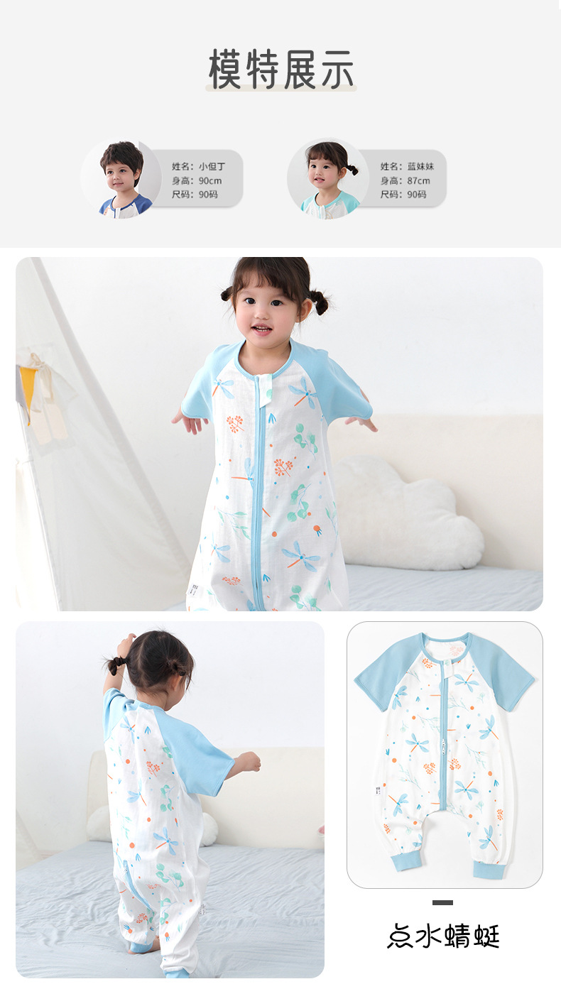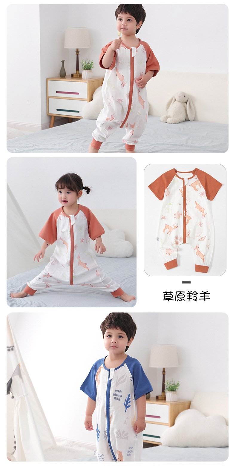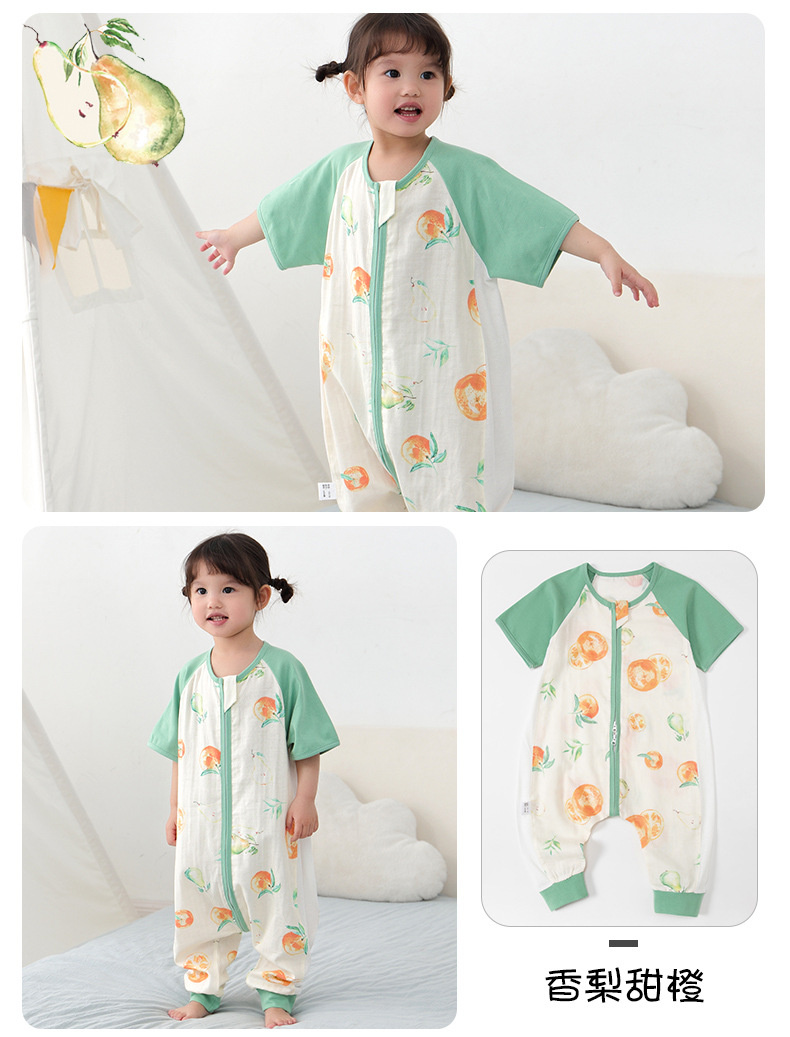 아기 침낭 여름 더블 거즈 잠옷 반팔 순면 아기 다리 침낭 어린이 점프 슈트 카테고리 A 얇은