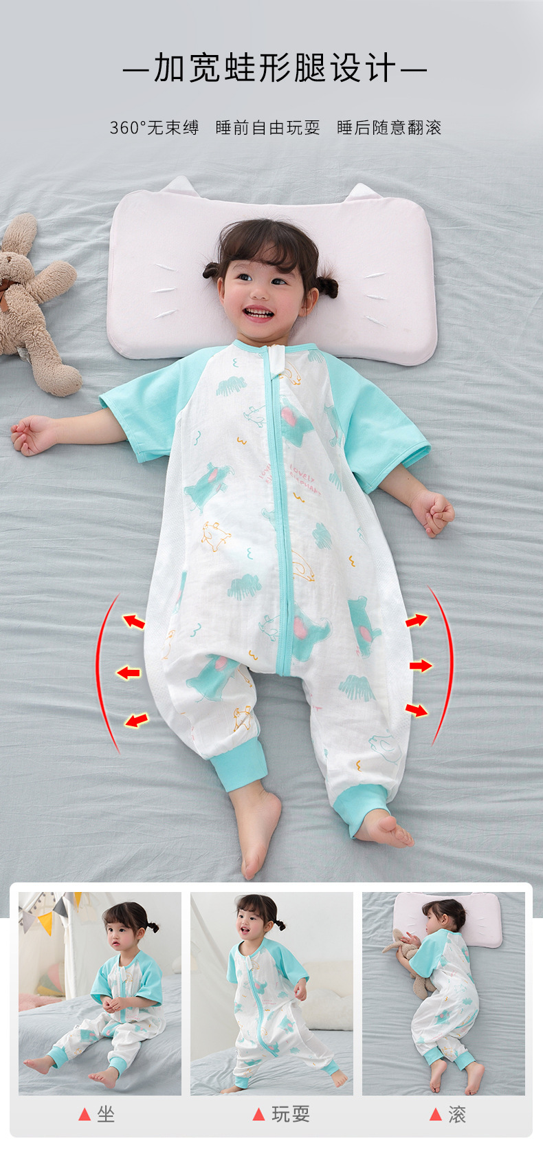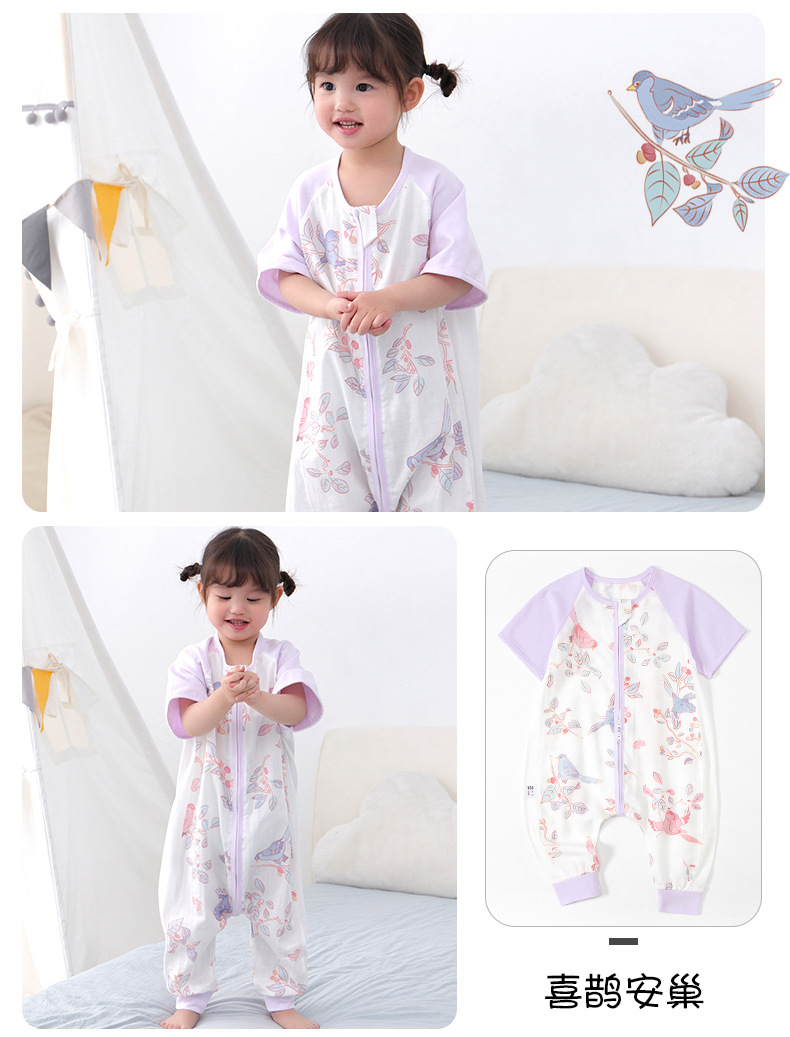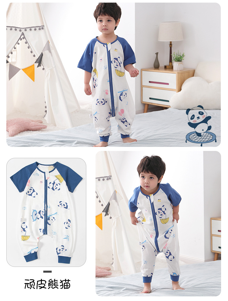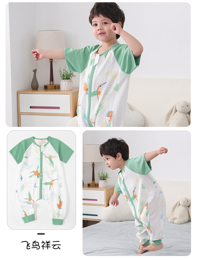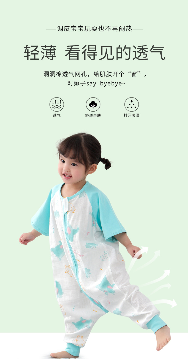 아기 침낭 여름 더블 거즈 잠옷 반팔 순면 아기 다리 침낭 어린이 점프 슈트 카테고리 A 얇은