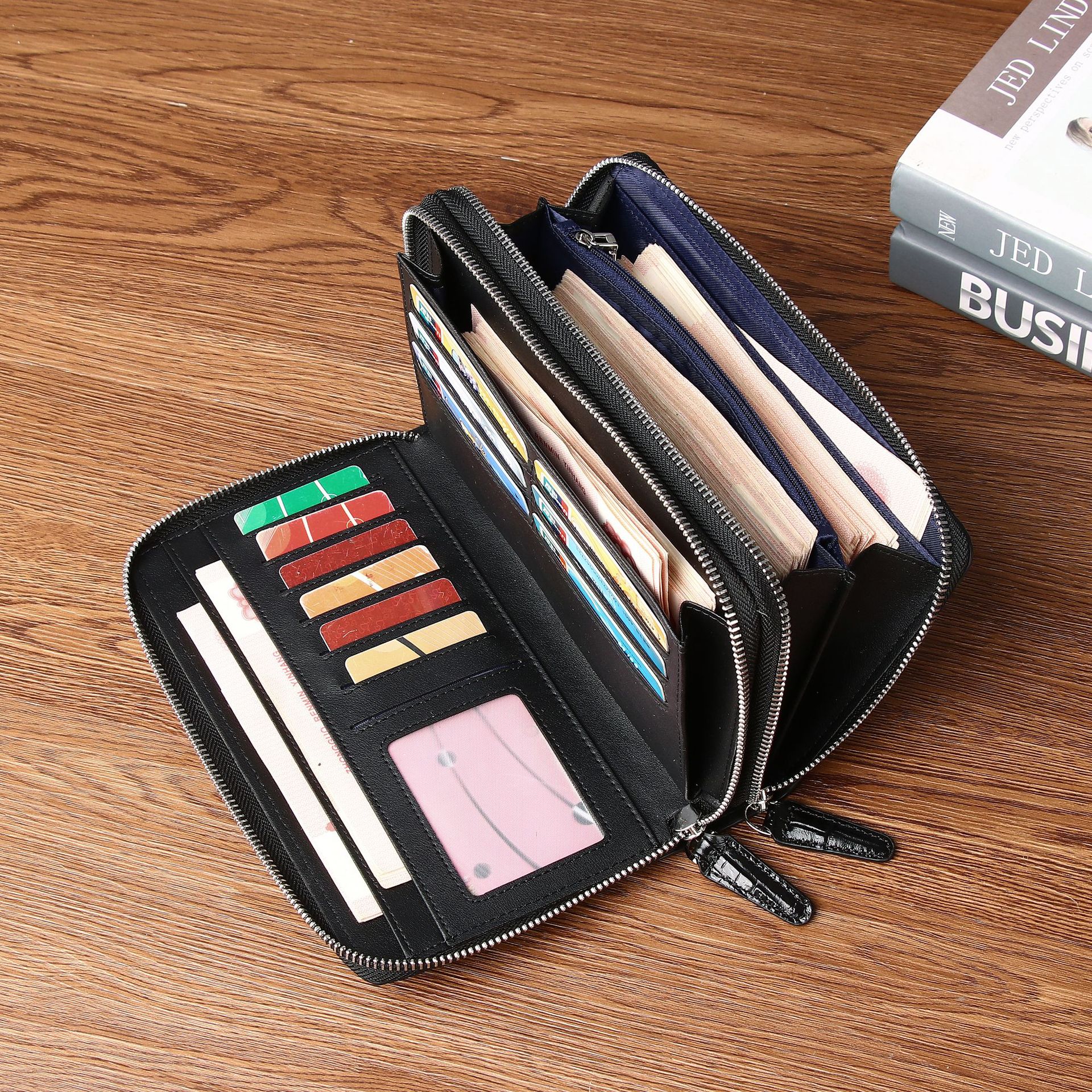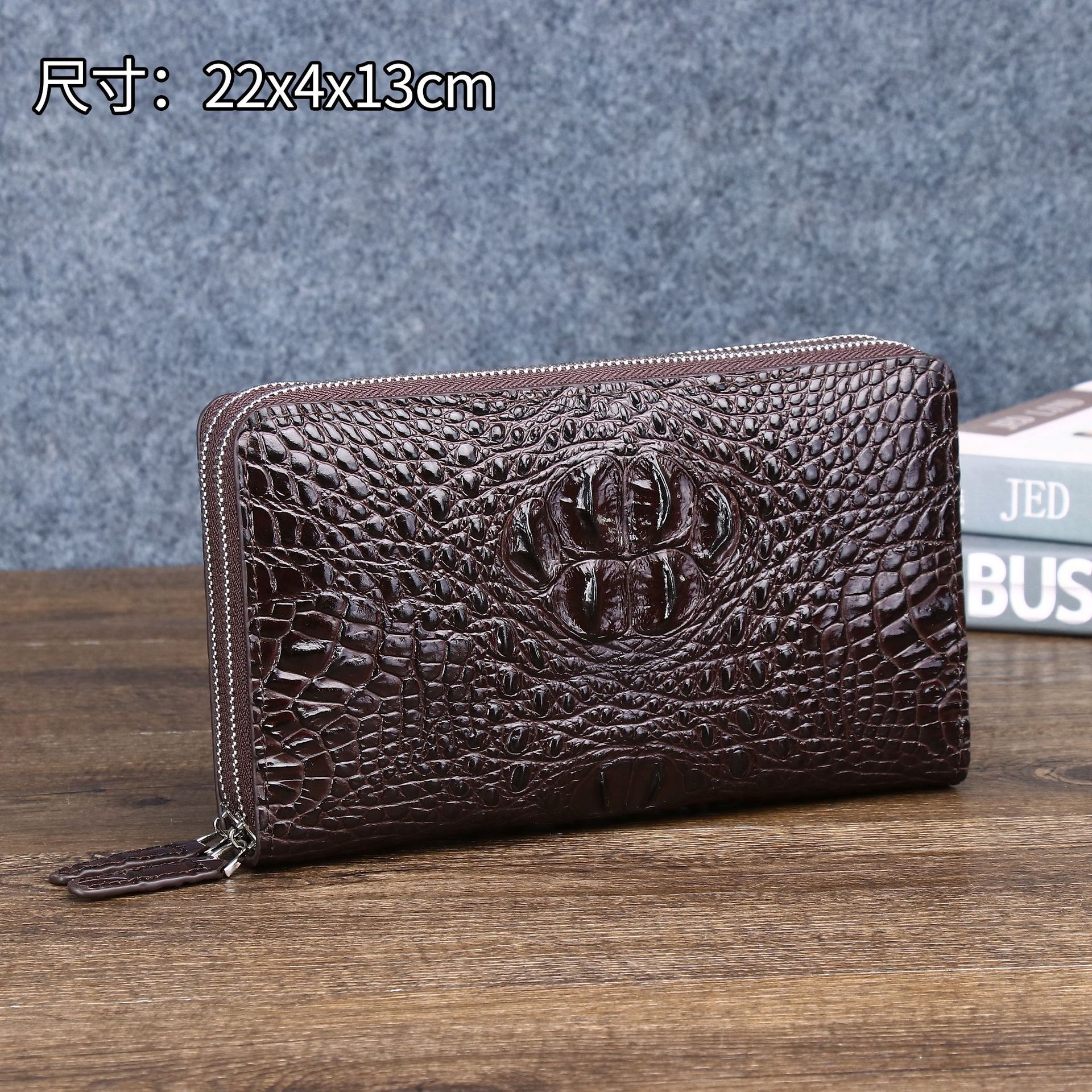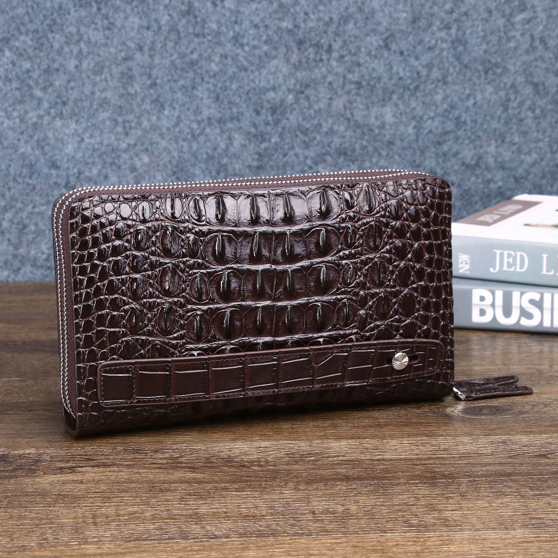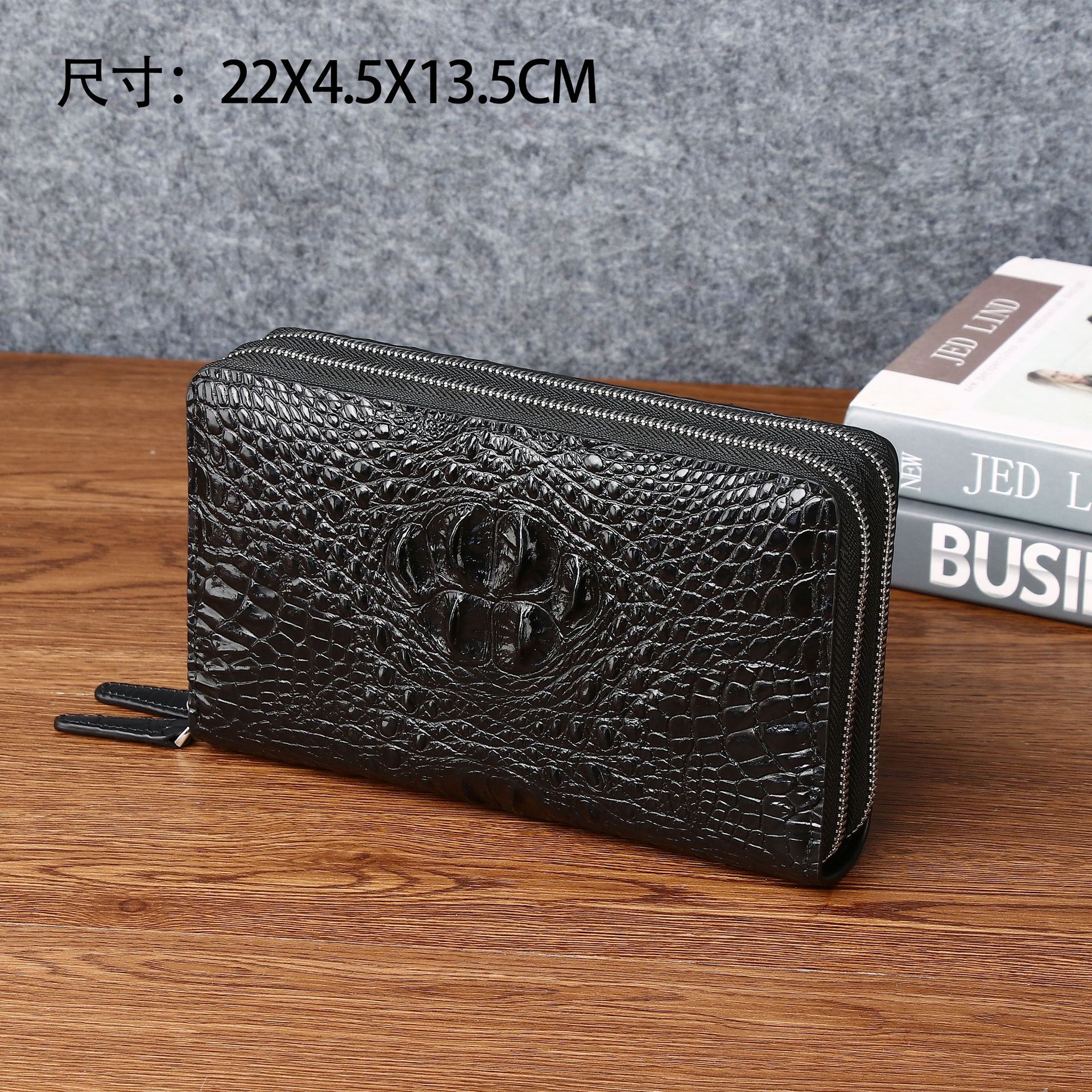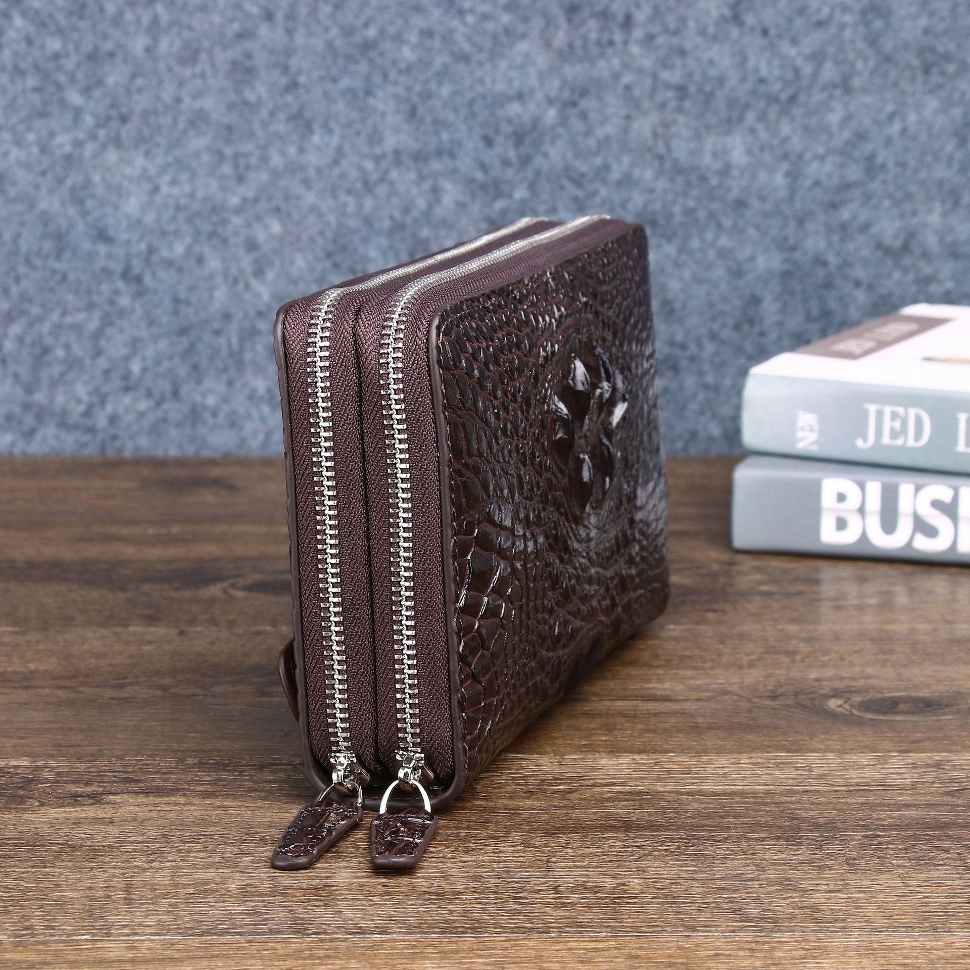 악어 물고기 뼈 패턴 남성용 더블 지퍼 핸드백 대용량 클러치 멀티 카드 지갑 정품 가죽 다기능 핸드백 트렌디