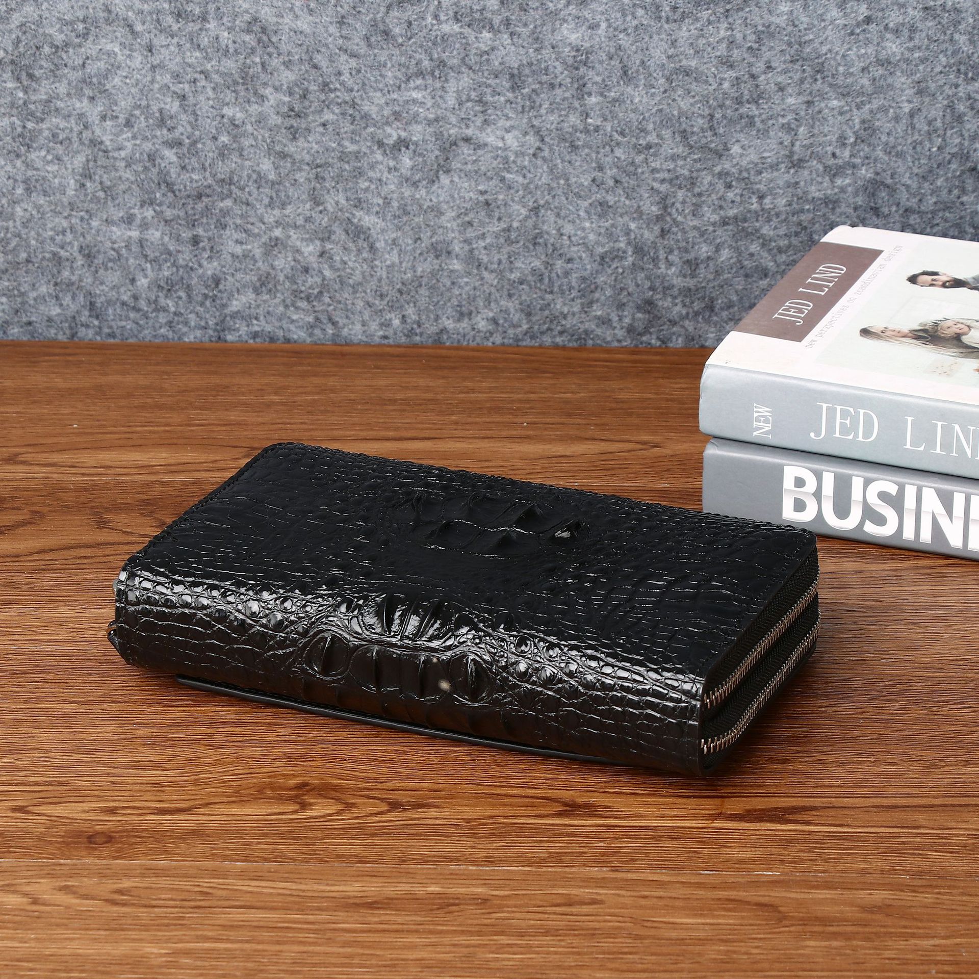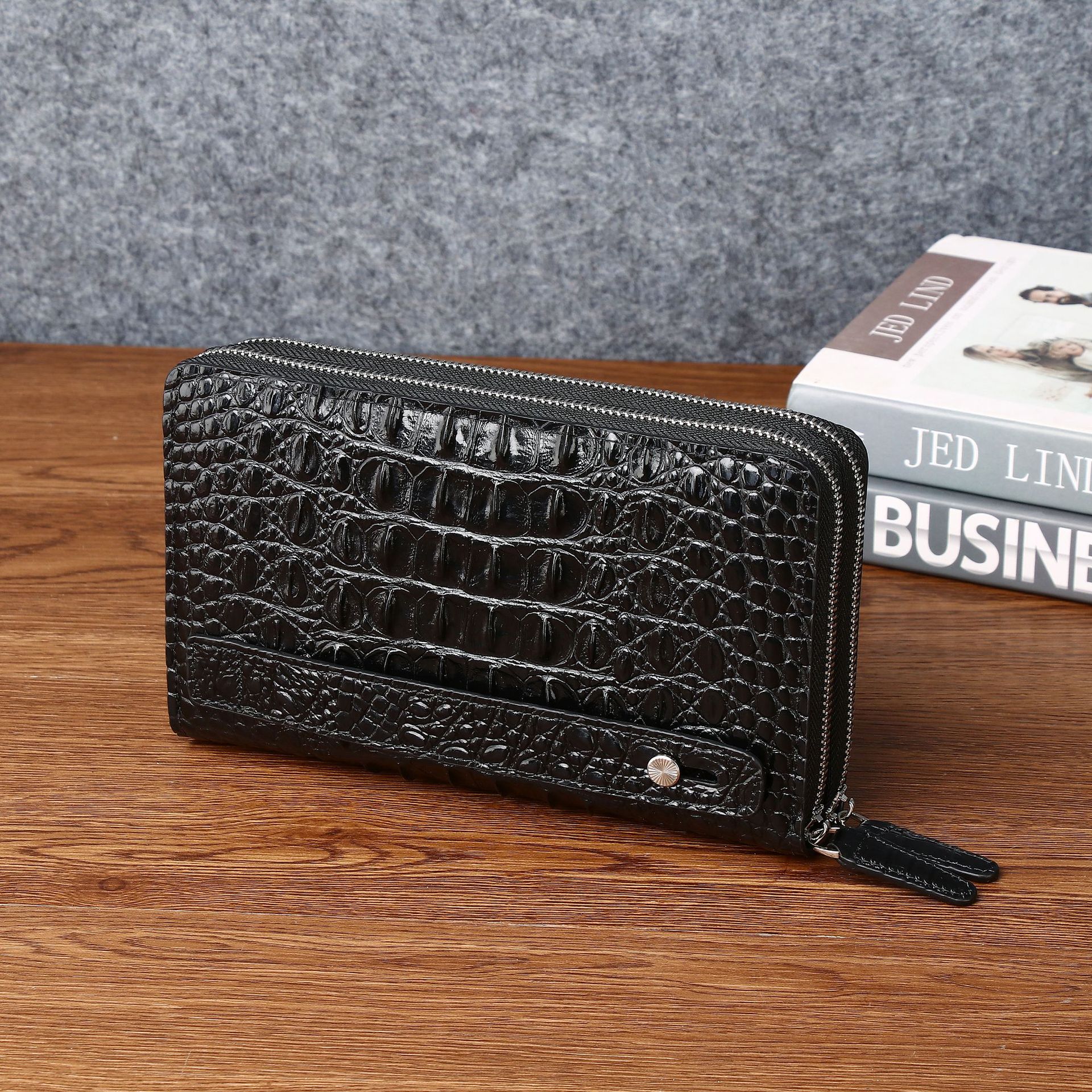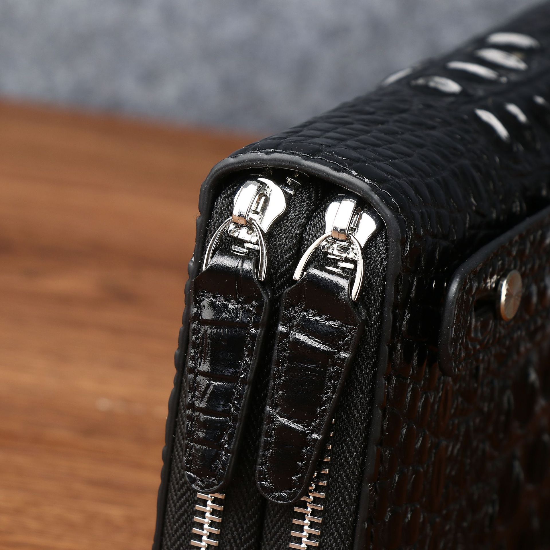 악어 물고기 뼈 패턴 남성용 더블 지퍼 핸드백 대용량 클러치 멀티 카드 지갑 정품 가죽 다기능 핸드백 트렌디스토어 가기