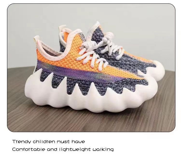 2023 사계절 새로운 남성 및 여성 아동 신발 문어 어린이 신발 비행 짠 슈퍼 통기성 유치원 실내 신발 코코넛 신발