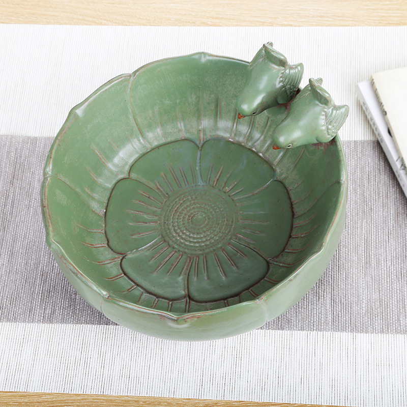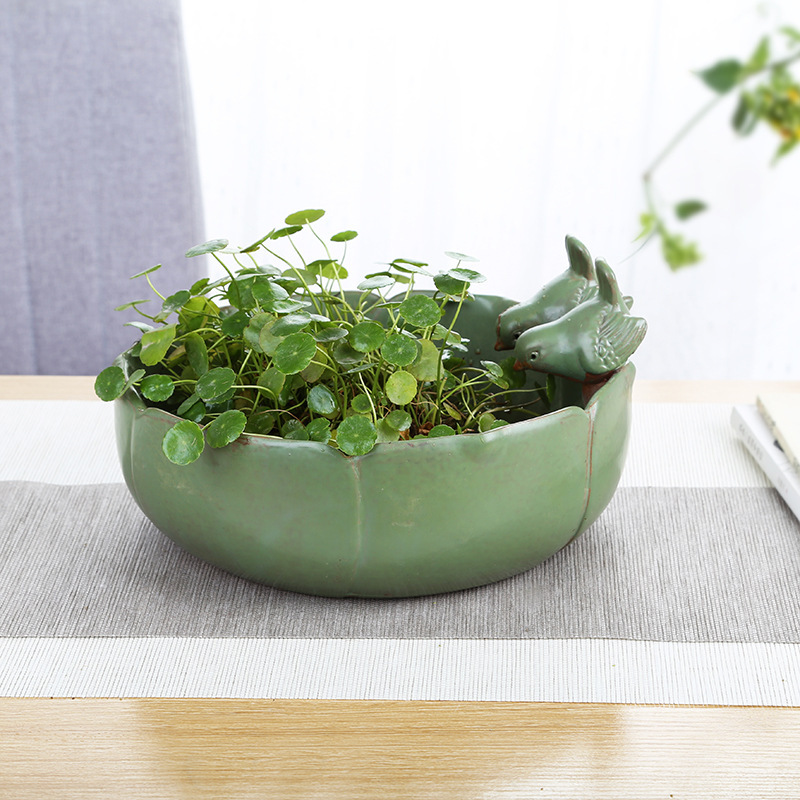 대형 비 다공성 녹색 장미 구리 허브 풍부한 대나무 수선화 화분 빈티지 세라믹 화분 실내 물 재배