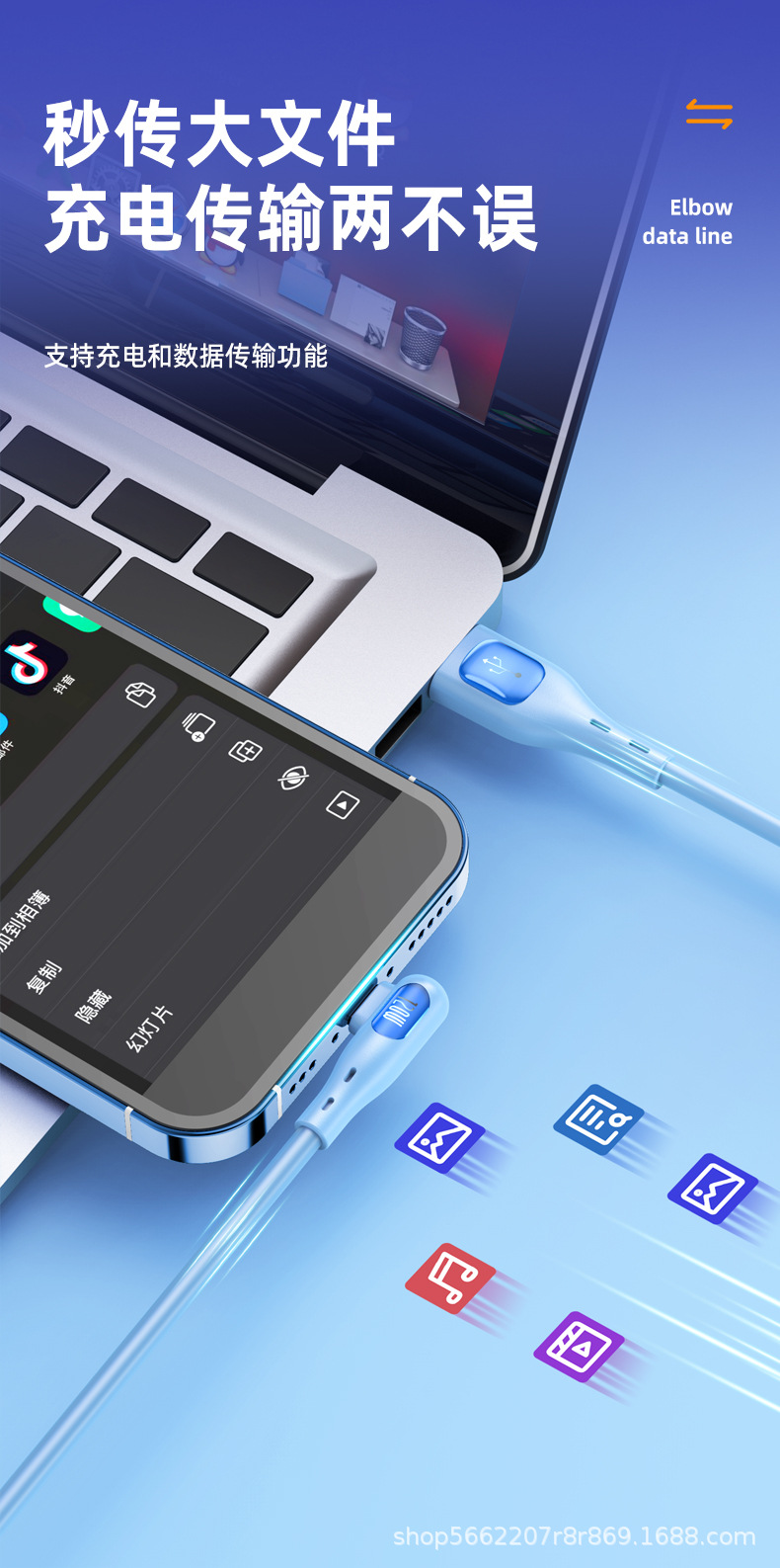 액체 팔꿈치 휴대 전화 데이터 케이블은 Apple 핸드 수영 팔꿈치 충전 라인 90 도 L 형 실리콘 고속 충전 라인에 적합합니다.스토어 가기