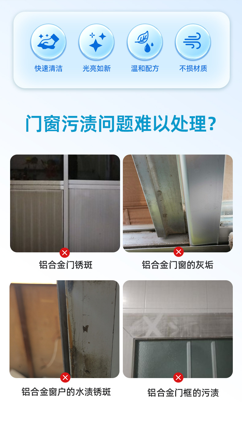 알루미늄 합금 도어 및 창 청소 에이전트 플라스틱 강철 강한 오염 제거 노란색 개조 토지 개방 청소 창 창 프레임 청소 에이전트스토어 가기