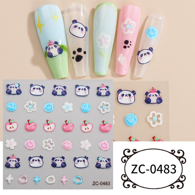 Zhengxiang 크리스탈 보석 DIY 부드러운 접착제 릴리프 네일 아트 스티커 주문을 받아서 만들어진 5d 자이언트 팬더 네일 아트 스티커 in 바람 네일 스티커