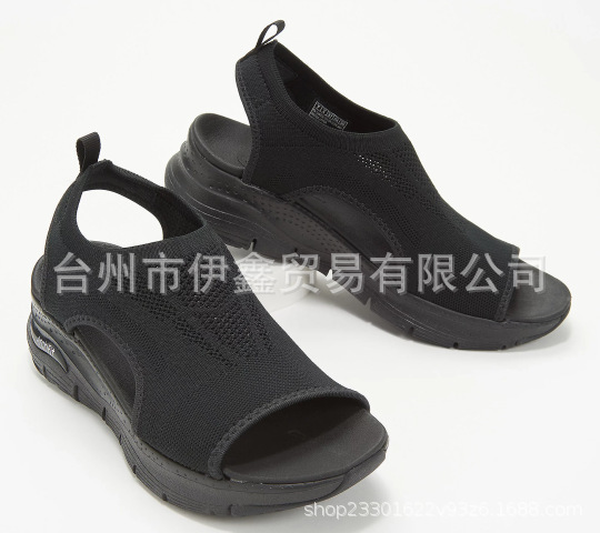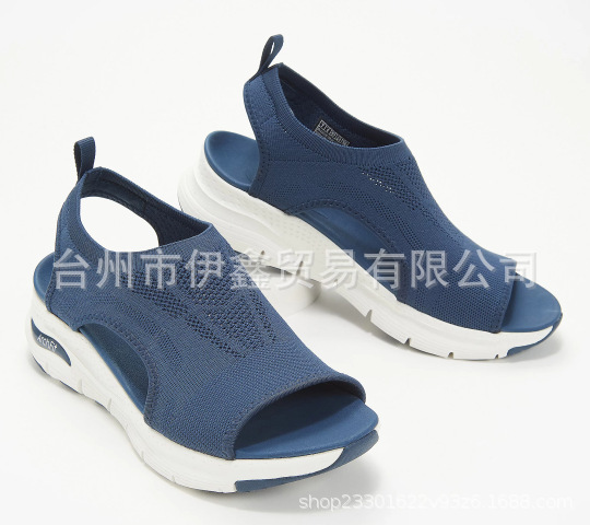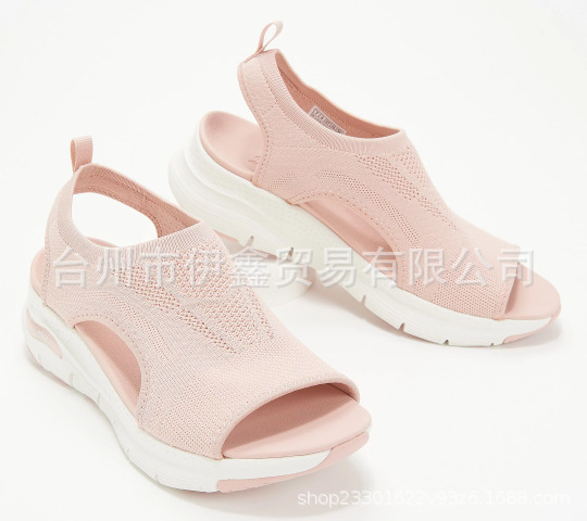 대외 무역 샌들 여성용 2019 여름 새 메쉬 천 두꺼운 밑창 부드러운 밑창 캐주얼 스포츠 여성 신발 여성용 플랫 밑창 플라이 니트 피시 머스 신발스토어 가기