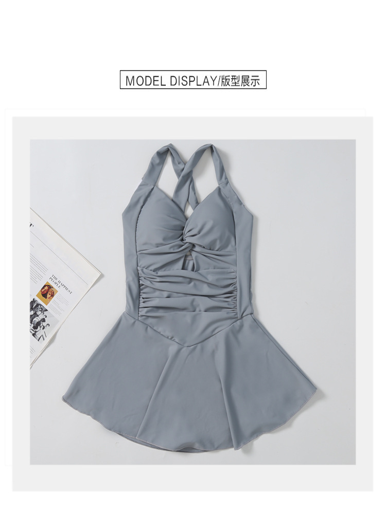 수영복 숙녀 순수 파우더 스커트 배꼽 커버 슬림 보수 목 섹시 원피스 온천 한국 수영복 도매