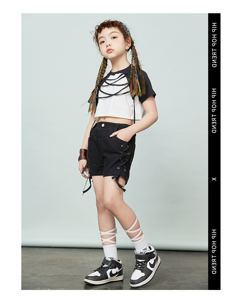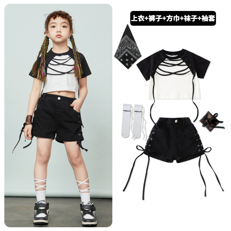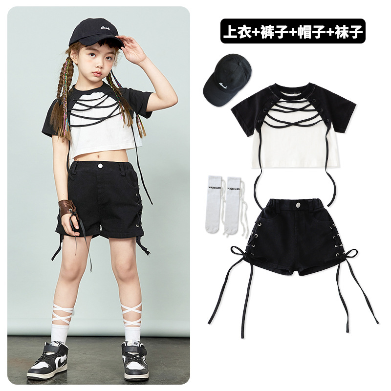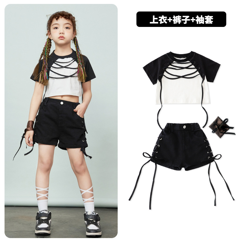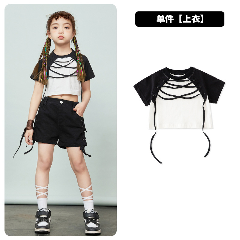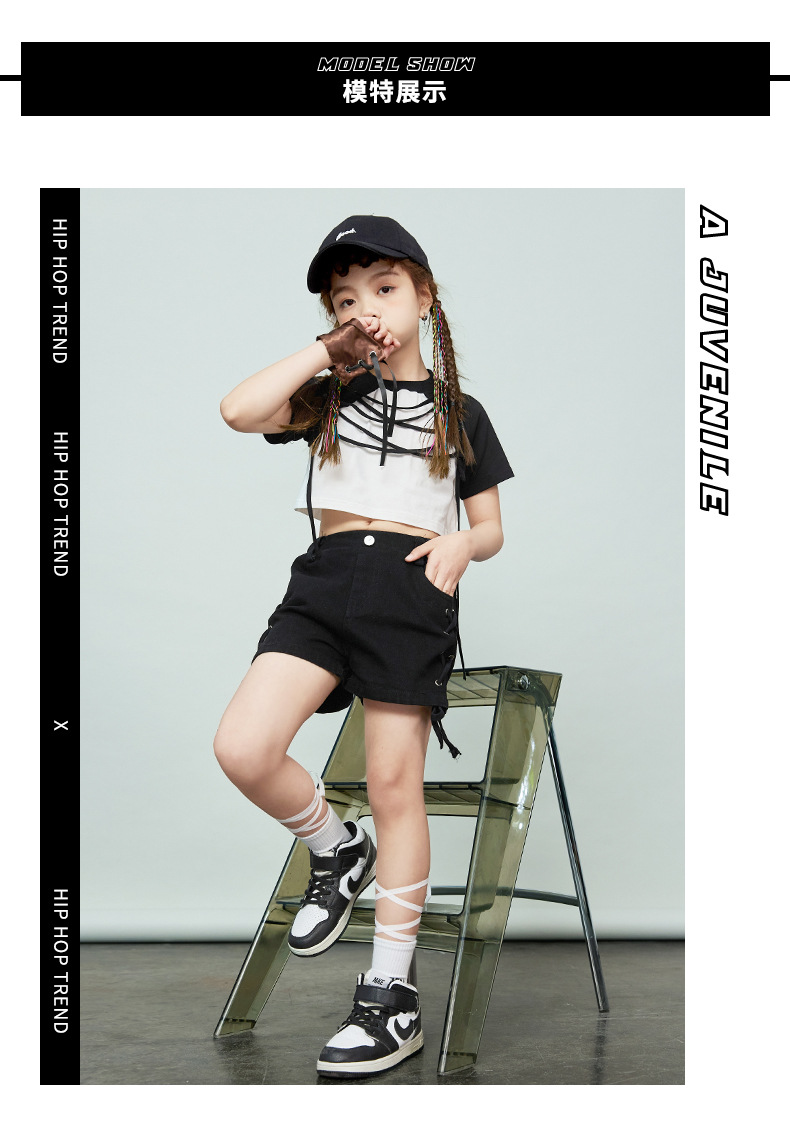 소녀 재즈 댄스 의류 모델 패션쇼 패션 의류 유행 시원한 잘 생긴 세트 배꼽 노출 프라이드 스트리트 걸스 어린이 공연 의류스토어 가기