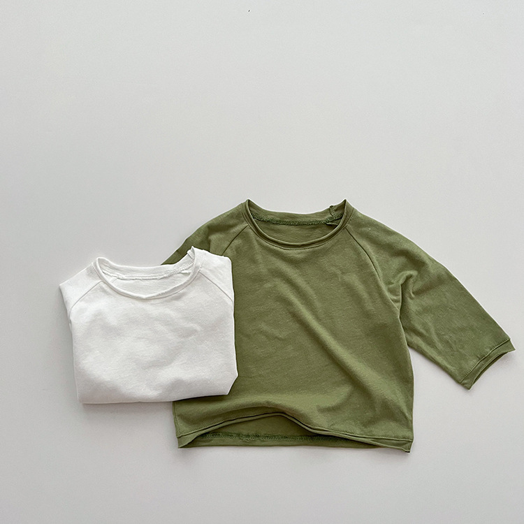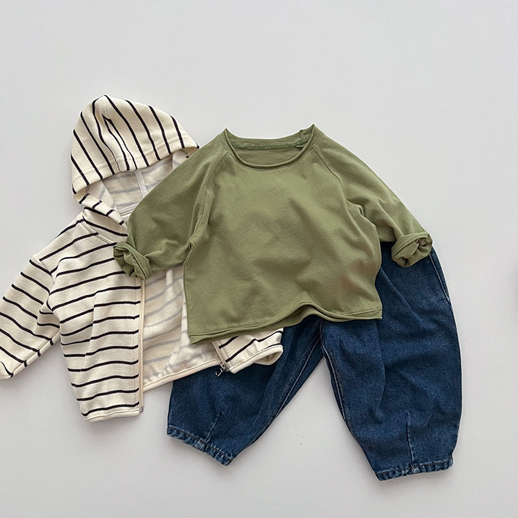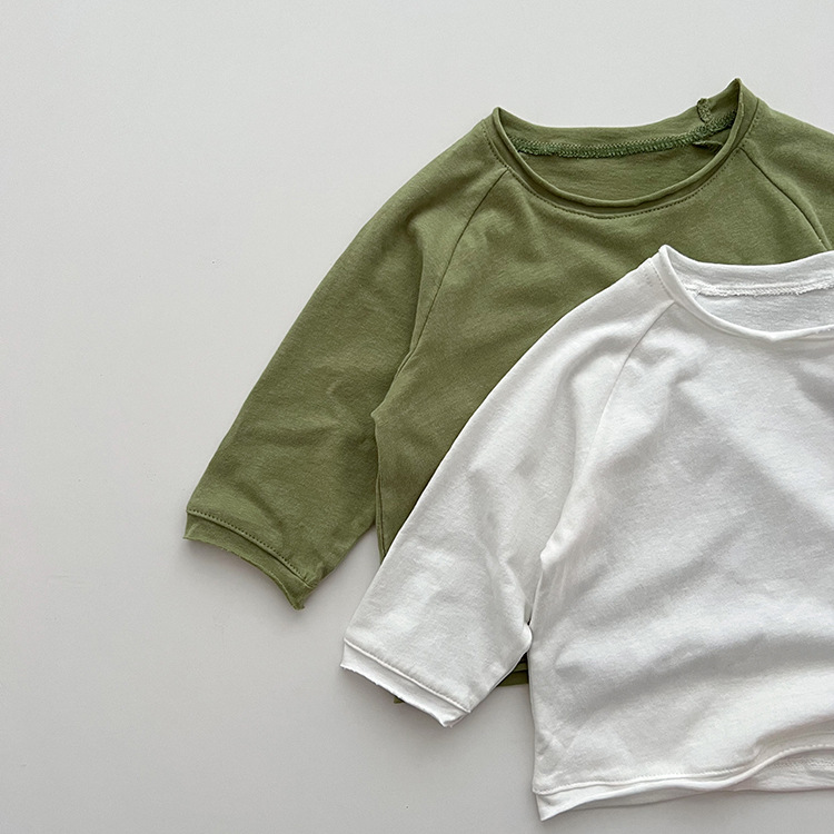 소년과 소녀를위한 질감 느슨한 가장자리 바닥 셔츠 ~ 봄과 가을 새로운 어린이 느슨한 아기 일본식 부드러운 왁스 컬링 긴 소매 티셔츠