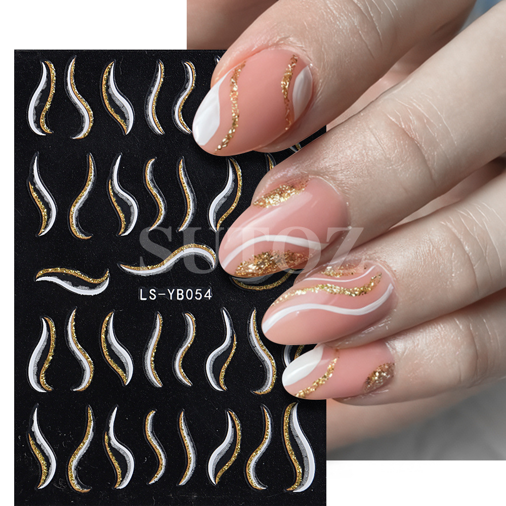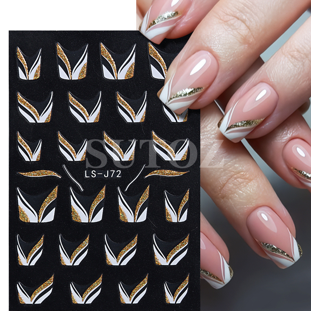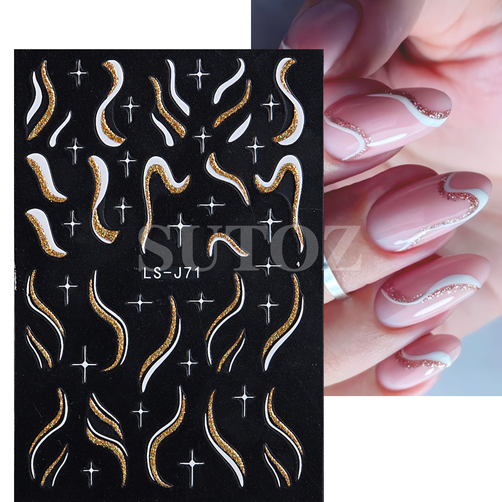 2023 네일 아트 새로운 스티커 철자 저녁 뜨거운 프랑스 반짝이 라인 요정 맛 네일 아트 다시 접착 스티커