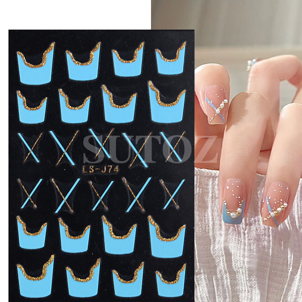 2023 네일 아트 새로운 스티커 철자 저녁 뜨거운 프랑스 반짝이 라인 요정 맛 네일 아트 다시 접착 스티커스토어 가기