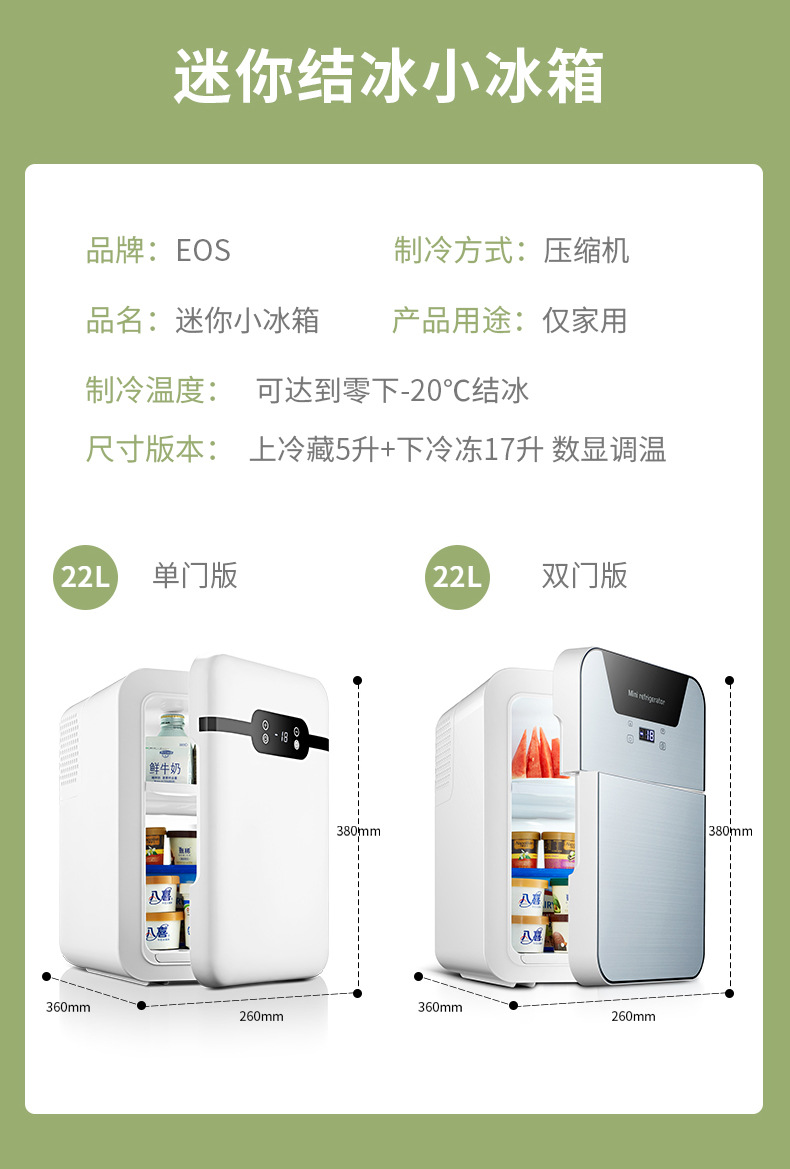 22L 미니 냉장고 소형 가정용 자동차 냉장고 압축기 냉동 기숙사 냉장 냉동고