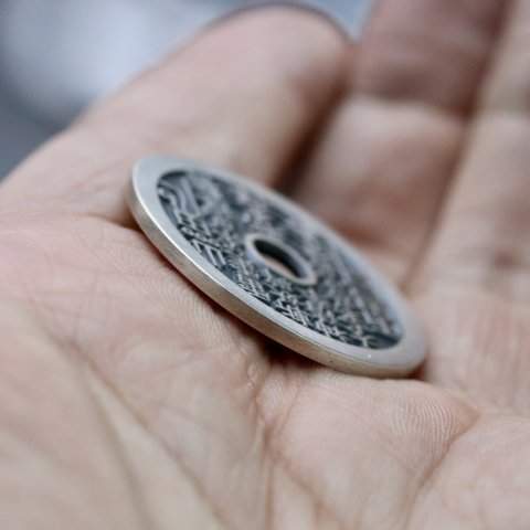 30mm 얇은 스털링 실버 산 유령 지출 돈 라운드 구멍 텍스트 제국 평화 돈 고대 공예 수제 실버 동전 Tianyi Baoquan